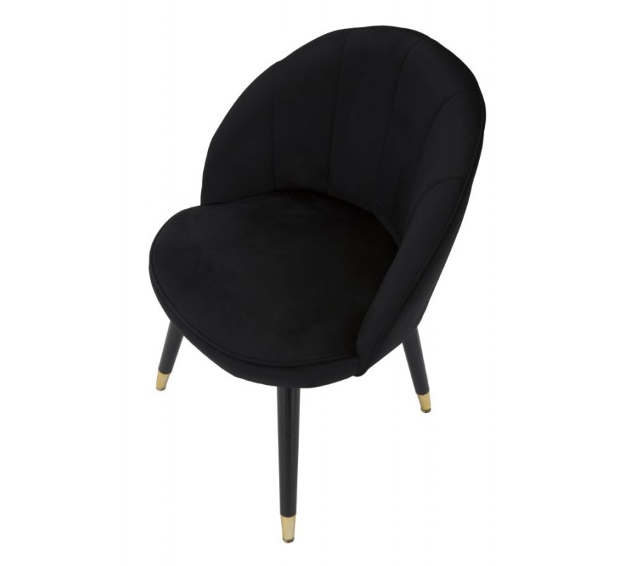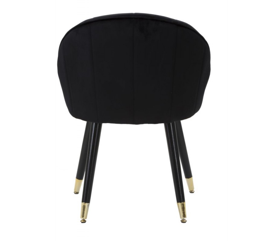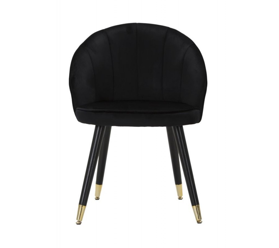 Štýlová art deco čierna zamatová jedálenská stolička Elveria s oblým operadlom a čiernymi nožičkami so zlatým detailom 80 cm