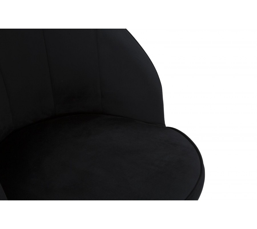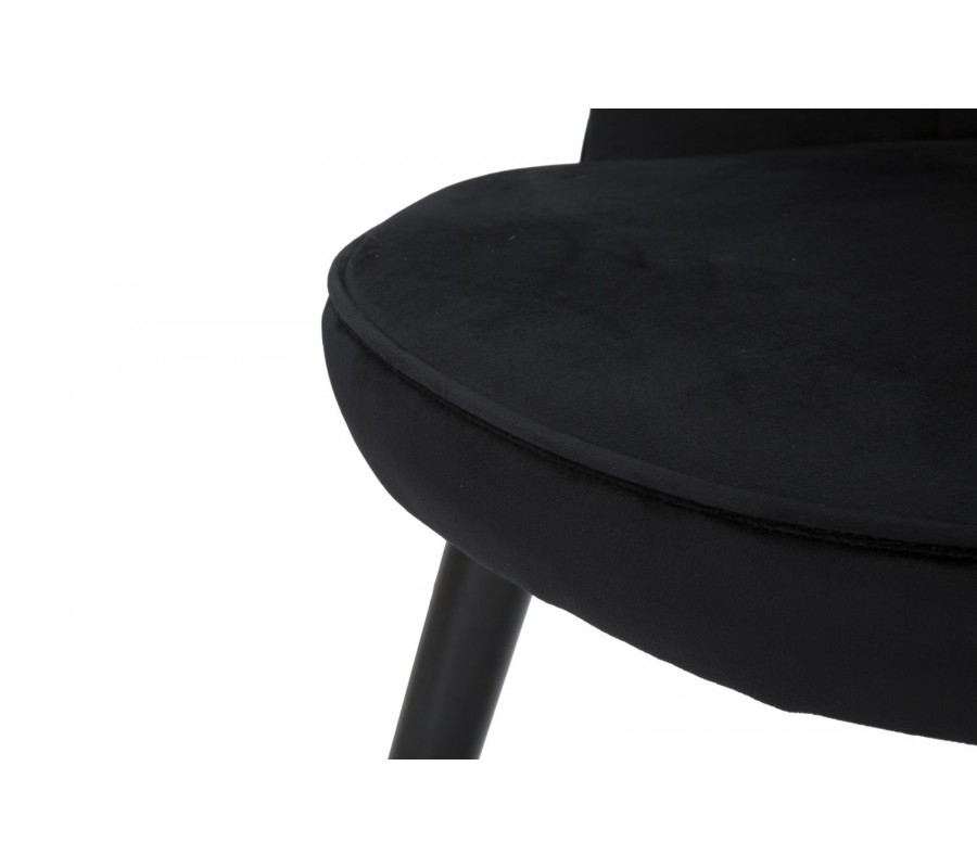 Jedálenská stolička Elveria v čiernej zamatovej úprave je stelesnením elegancie a moderného art deco štýlu. Jej zaoblené operadlo plynule prechádza do bokov, čím vytvára kompaktný a zároveň pohodlný tvar vhodný na dlhšie sedenie. Prešívaný poťah s jemnými zvislými líniami pridáva vizuálny objem a mäkkosť, zatiaľ čo zamatový povrch pôsobí luxusne a príjemne na dotyk.