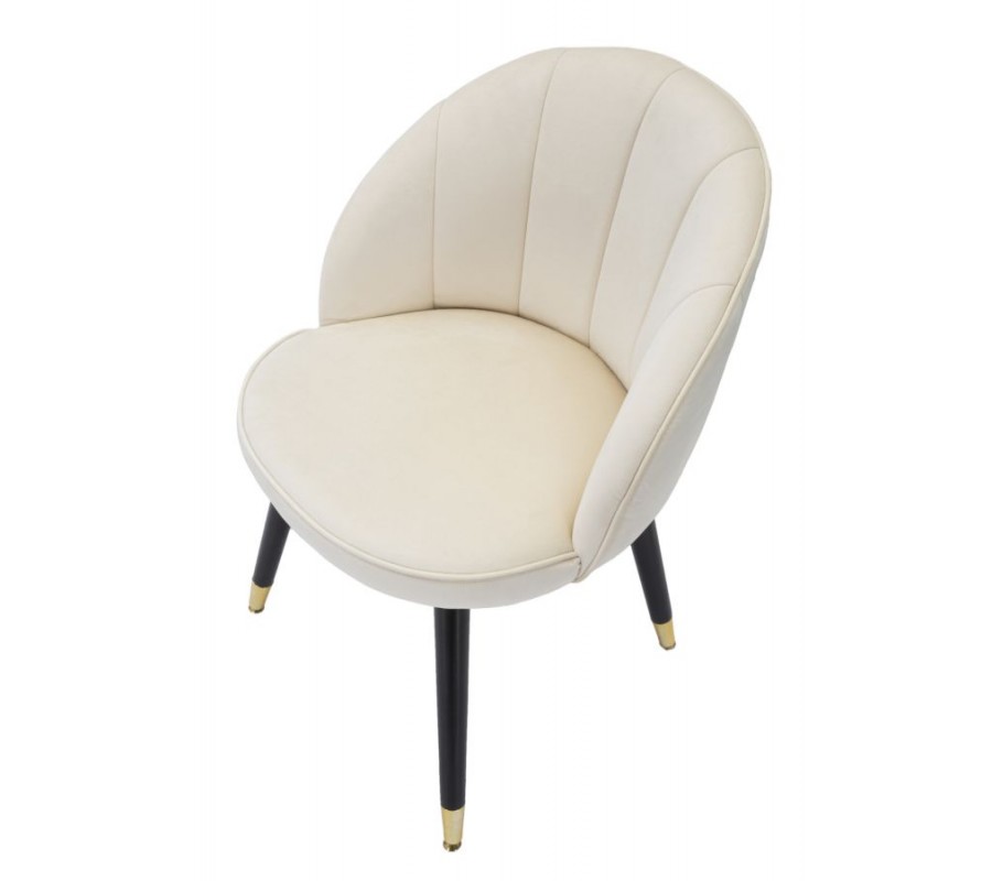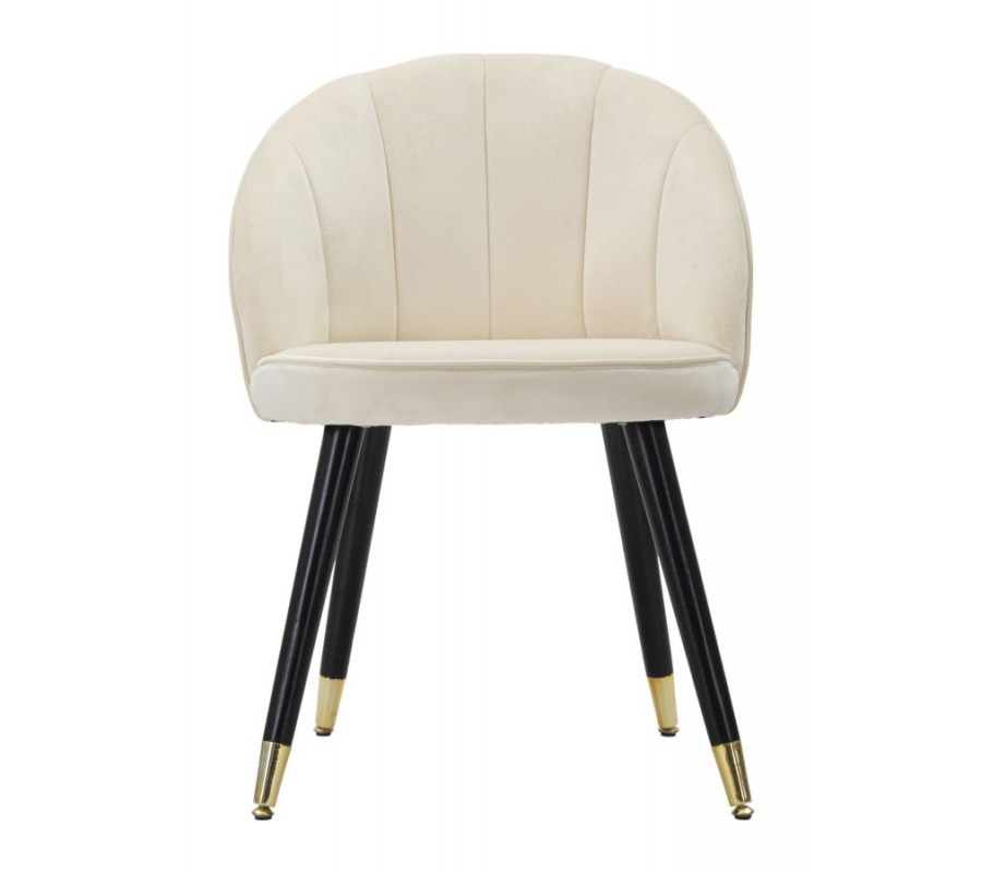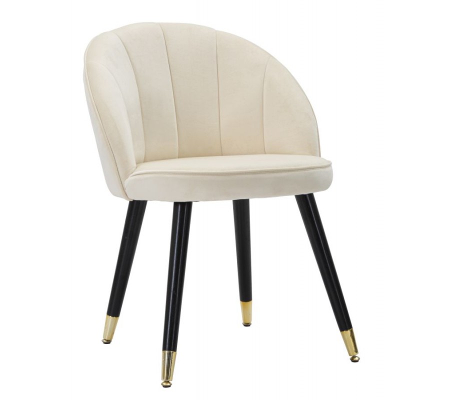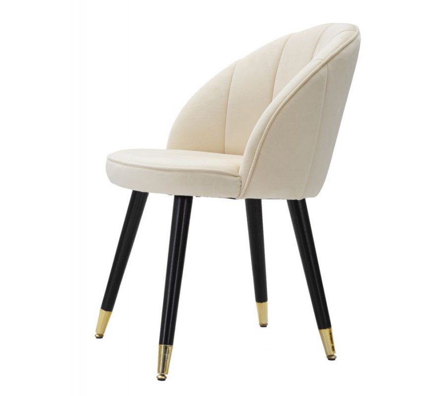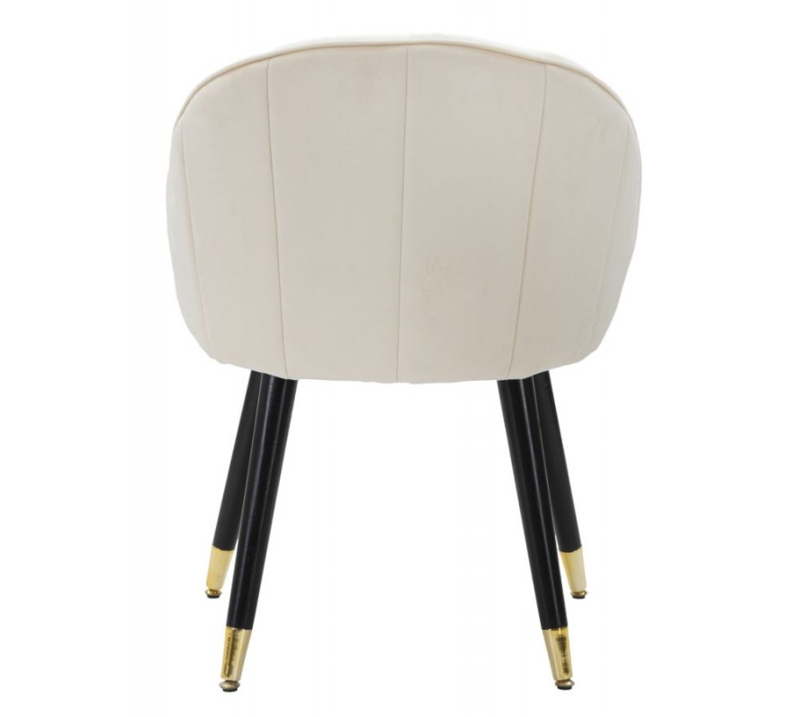 Art deco krémová zamatová jedálenská stolička Elveria s čiernymi nohami so zlatými detailmi 80 cm
