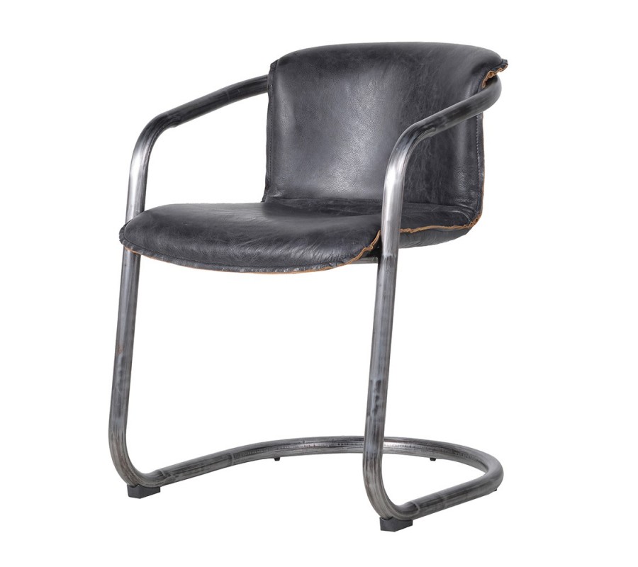 Vintage industriálna jedálenská stolička Slayton s čiernym poťahom z pravej kože a sivou kovovou konštrukciou 75 cm