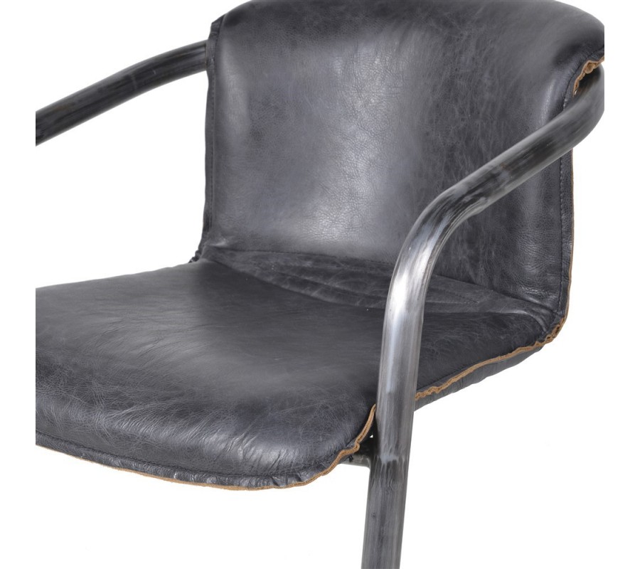 Chrbtová opierka a sedacia časť do seba plynule prechádzajú a sú spevnené kvalitným dyhovaným drevom. Pokrýva ich penová výplň pre komfortné sedenie a poťah z pravej kože v čiernej farbe. Koža je hladko brúsená a príjemná na dotyk, s vintage efektom, ktorý výborne korešponduje s dizajnom kovovej konštrukcie.