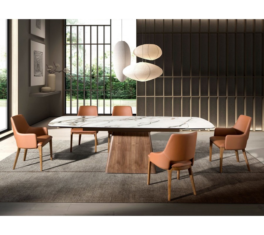 Jedálenská stolička Vita Naturale prinesie do vašej jedálne sofistikované spojenie prírodných materiálov so súčasným talianskym dizajnom. Moderná silueta pôsobí minimalistickým dojmom a bohaté odtiene hnedej vyvolávajú pocit tepla a útulnosti.