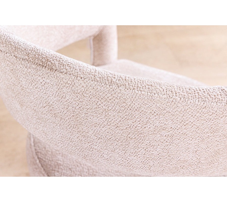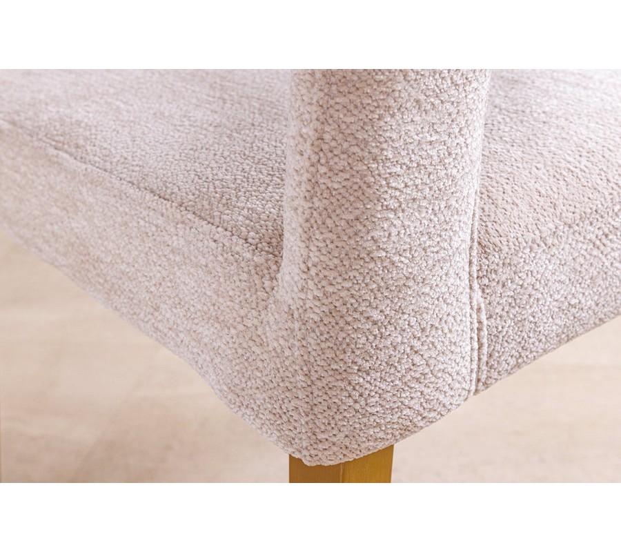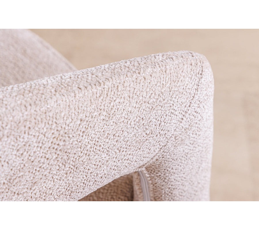 Čalúnenie je potiahnuté kvalitnou textilnou látkou v béžovej farbe, ktorá vnáša do priestoru prirodzené svetlo a pocit hrejivej elegancie. Jemná štruktúra látky je príjemná na dotyk a v kombinácii s neutrálnym odtieňom vytvára nadčasový vzhľad vhodný pre moderné aj klasickejšie ladené interiéry.