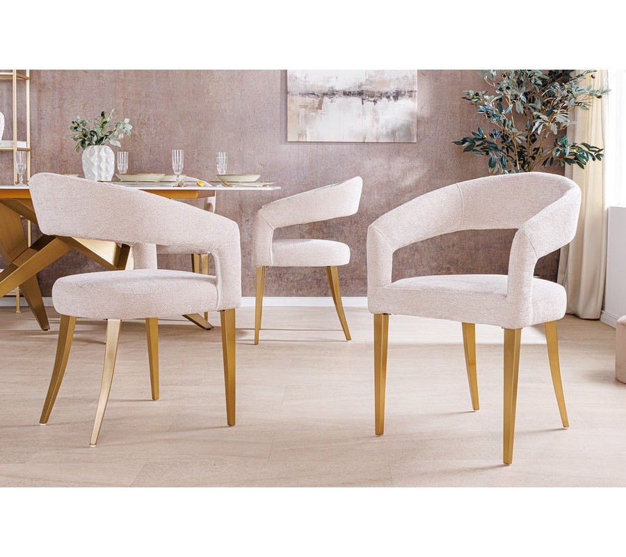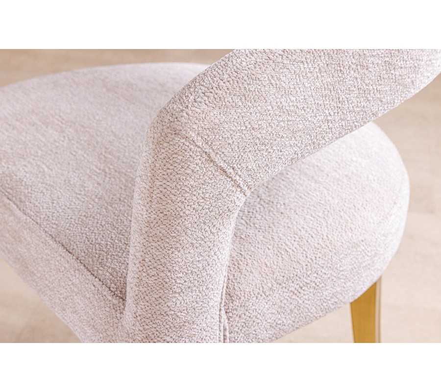 Moderná art deco čalúnená béžová jedálenská stolička Lunit s textúrovaným poťahom a kovovými zlatými nožičkami 81 cm