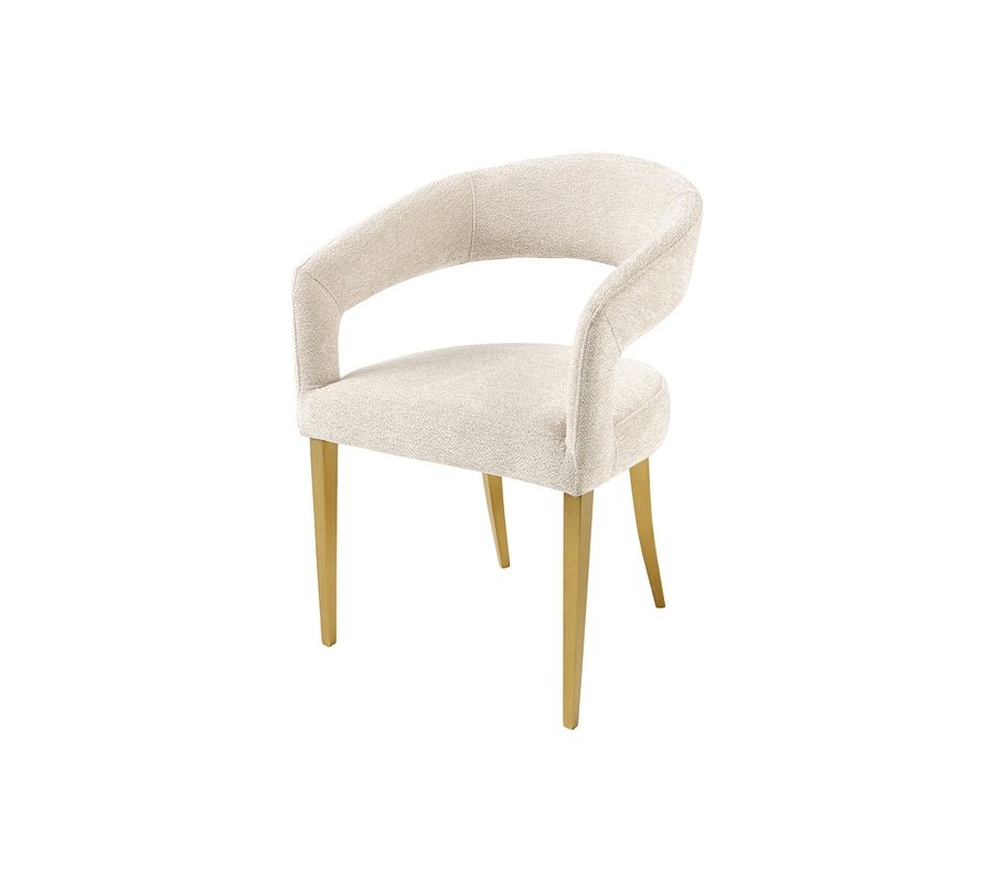 Moderná glamour jedálenská stolička Lunit prináša do interiéru eleganciu, jemnosť a pohodlie v nadčasovom prevedení. Oblé operadlo plynulo prechádza do opierok na ruky a vďaka charakteristickému výrezu v oblasti chrbta pôsobí stolička vzdušne a ľahko. Tento dizajnový prvok zároveň poskytuje voľnosť pohybu a pridáva stoličke originálny architektonický ráz.