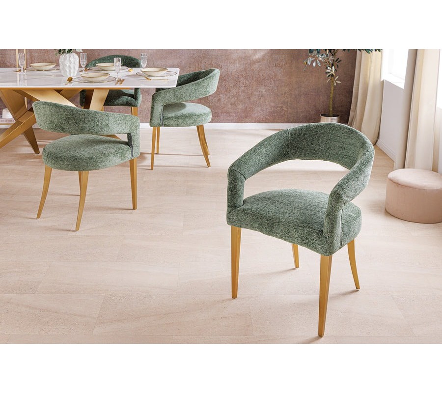 Štýlová art deco jedálenská stolička Lunit predstavuje kombináciu sofistikovaného dizajnu a výnimočného komfortu. Oblé sedadlo s charakteristickým výrezom v oblasti operadla pôsobí vzdušne a elegantne, pričom zachováva pocit opory a pohodlia. Tento detail nielen odľahčuje vizuálnu siluetu stoličky, ale zároveň jej dodáva jedinečný architektonický výraz inšpirovaný estetikou art deco.