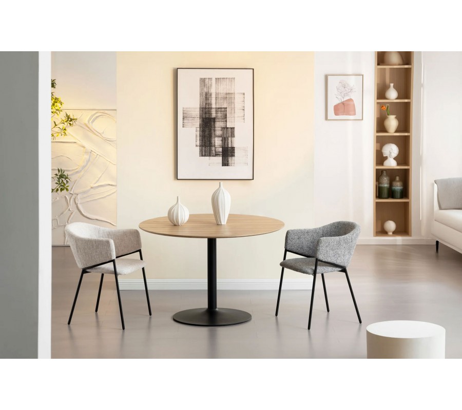 Jedálenská stolička Sionna výborne doplní priestory zariadené v zemitých odtieňoch. Hodí sa k modernému stolu s kovovou podstavou a vrchnou doskou z masívneho dreva či svetlého mramoru. Môžete ju tiež skombinovať so skleneným či chrómovým nábytkom.