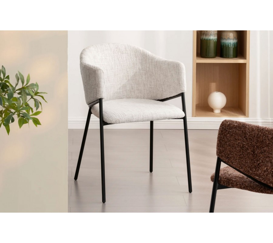 Moderná čalúnená jedálenská stolička Sionna s béžovým melírovaným poťahom a čiernymi nožičkami 77 cm