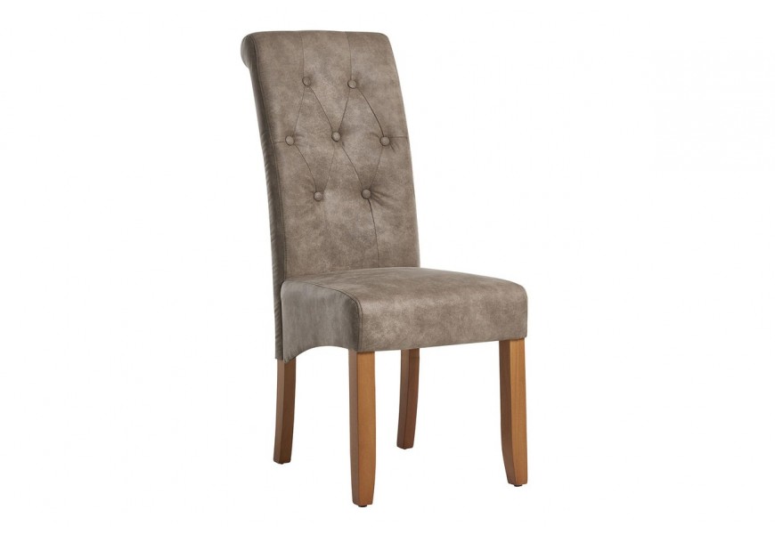 Dizajnová klasická jedálenská stolička Valentino s prešívanou zahnutou opierkou v hnedosivom odtieni taupe 110 cm