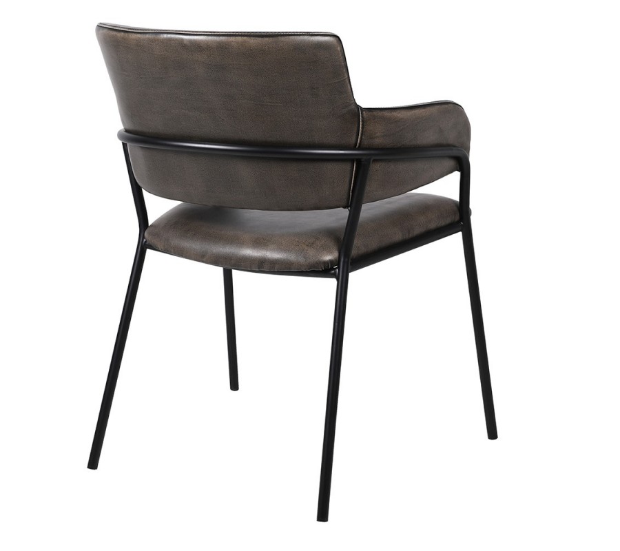 Industriálna hnedá kožená jedálenská stolička s čiernou kovovou konštrukciou a úzkymi bočnými opierkami 83 cm
