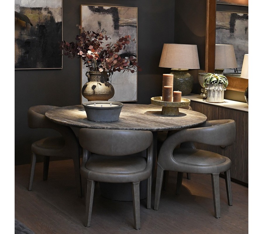 Skvele sa kombinuje s jedálenskými stolmi z masívneho dreva alebo mramoru, najmä v tmavších odtieňoch, ktoré kontrastujú s béžovou kožou. Dopĺňajú ju kovové a sklenené dekorácie v zlatej, čiernej alebo chrómovej farbe a jemné textílie v krémových alebo pastelových tónoch, ktoré umocňujú luxusný vzhľad.