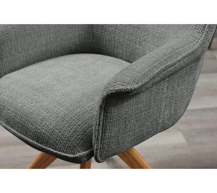 Dizajnová moderná sivá jedálenská stolička Corvin s otočnou funkciou so ženilkovým poťahom a hnedými dubovými nohami 68 cm