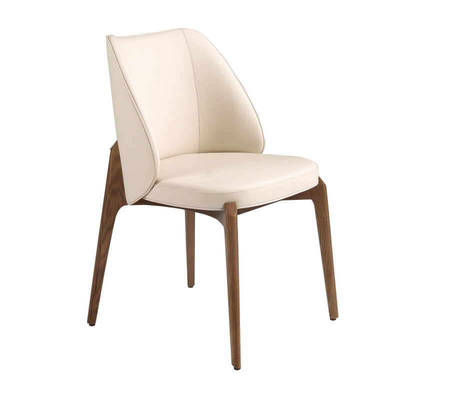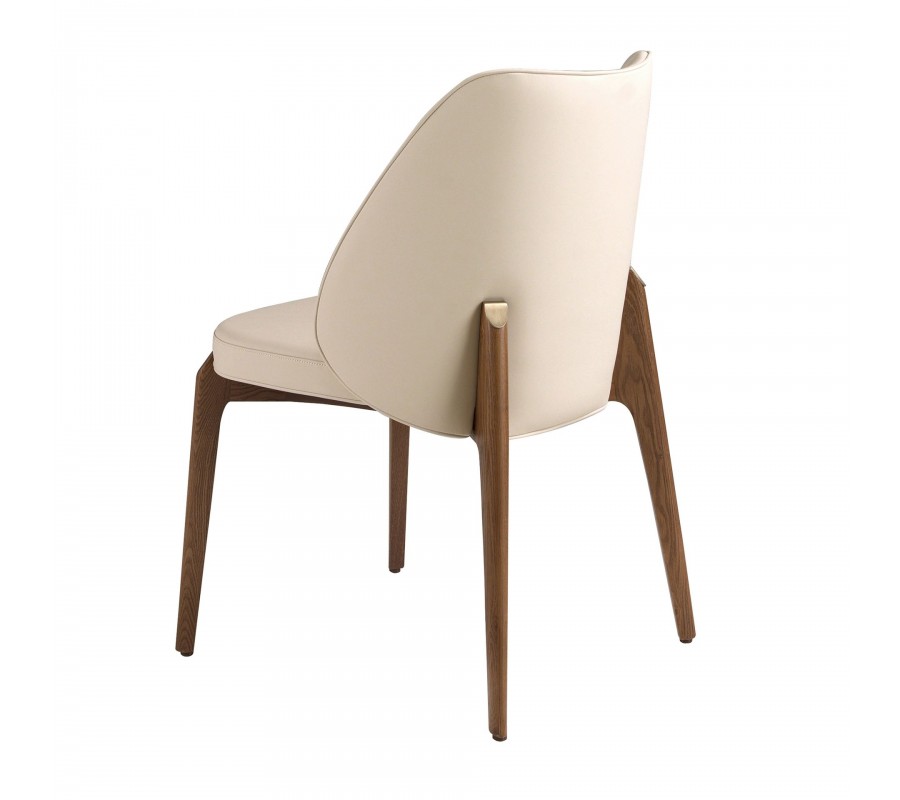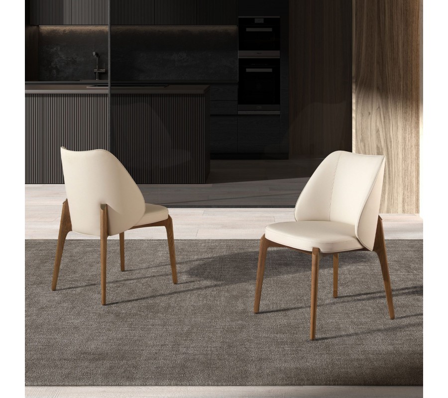 Luxusná moderná jedálenská stolička Vita Naturale s bočnicami s koženým krémovým poťahom a orechovými hnedými nohami 49 cm