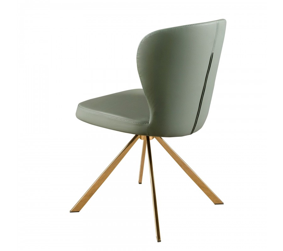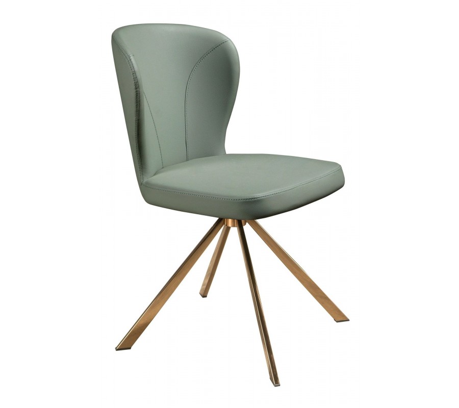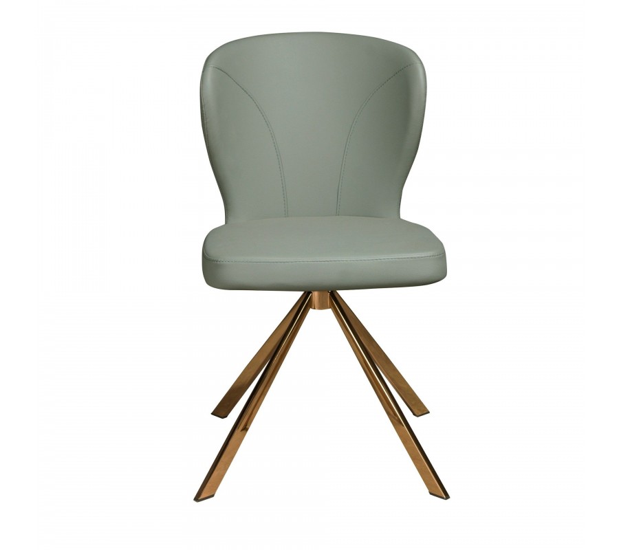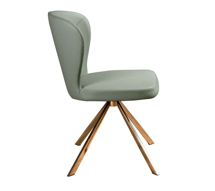 Luxusná glamour otočná jedálenská stolička Forma Moderna s pastelovým zeleným koženým poťahom a ružovozlatými nohami 83 cm