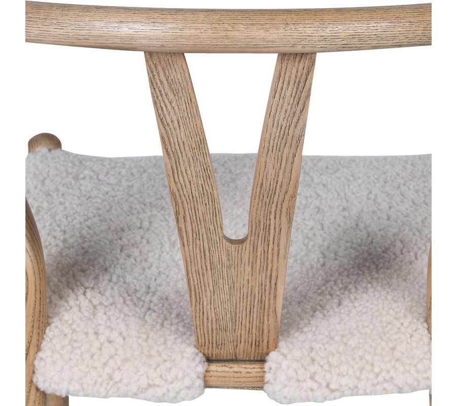 Škandinávska jedálenská stolička Classic z jaseňového hnedého dreva s operadlom v tvare Y a bielym poťahom z ovčej vlny 79 cm