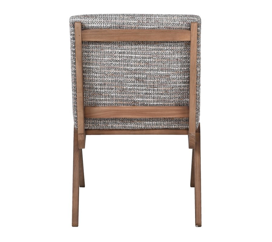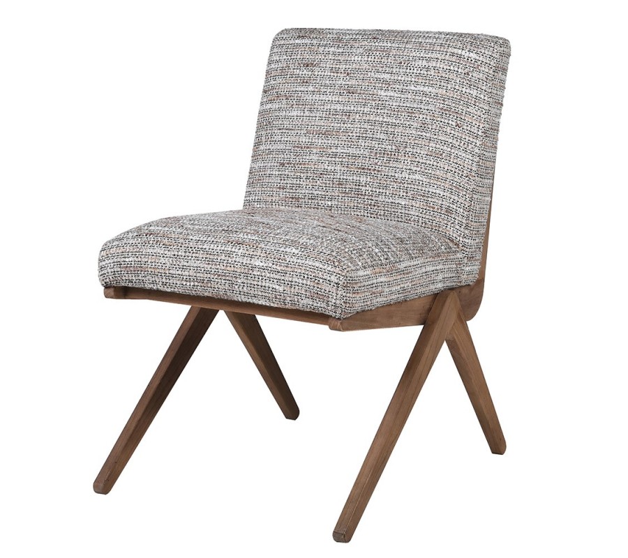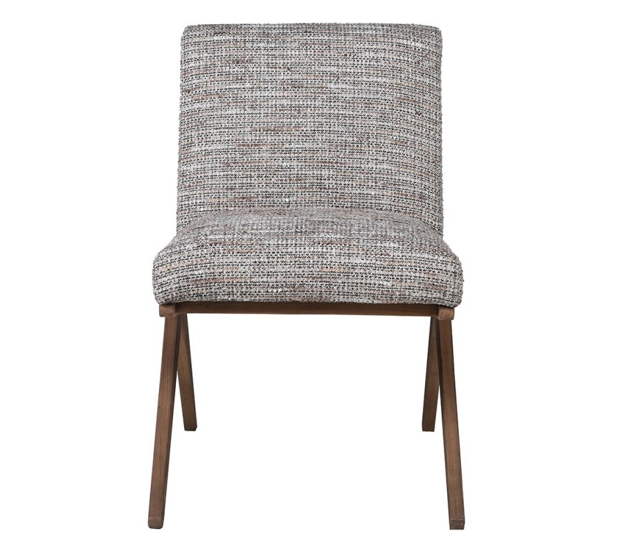 Základ tvorí drevená konštrukcia v teplom hnedom odtieni, z ktorej vychádzajú nožičky s originálnym tvarom do kríža na vrchu– predná noha je vyosená dopredu a zadná dozadu, čím vzniká zaujímavá geometrická kompozícia a zároveň vysoká stabilita.