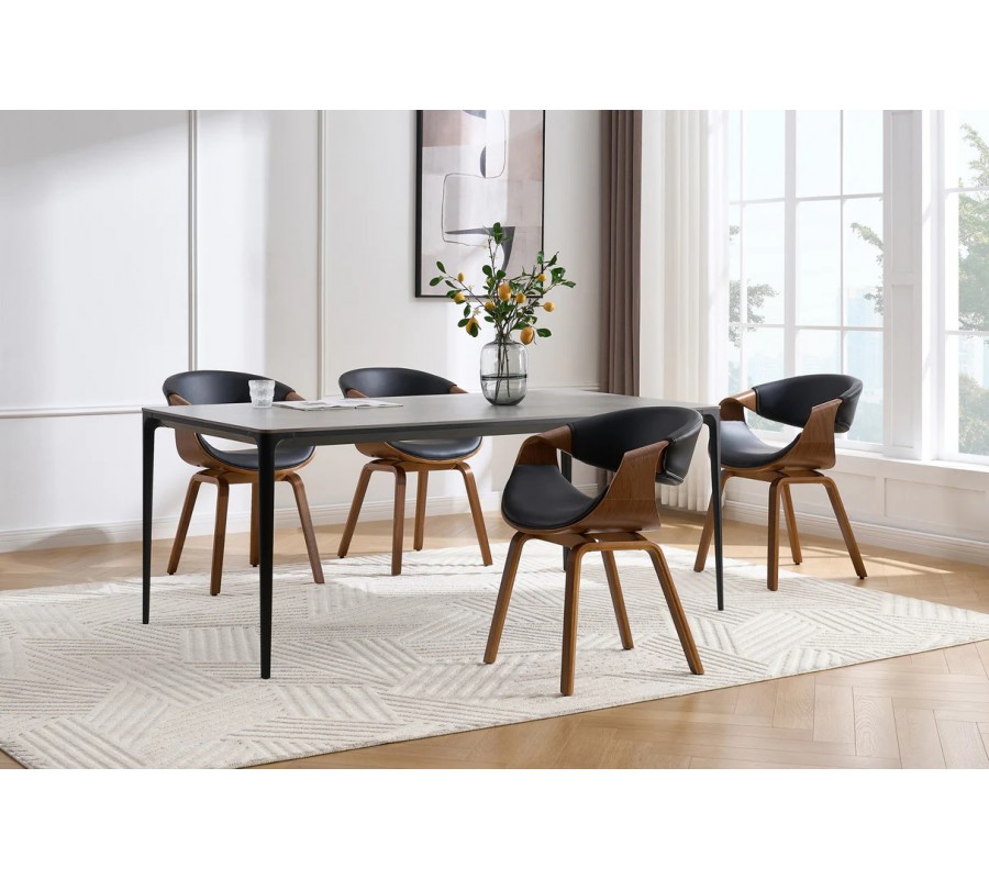 Jedálenská stolička Norwich vás očarí svojou dizajnovou siluetou s nádychom retro štýlu. Kombinácia orechovo hnedého dreva a čiernej kože je nadčasová a pôsobí sofistikovaným dojmom.