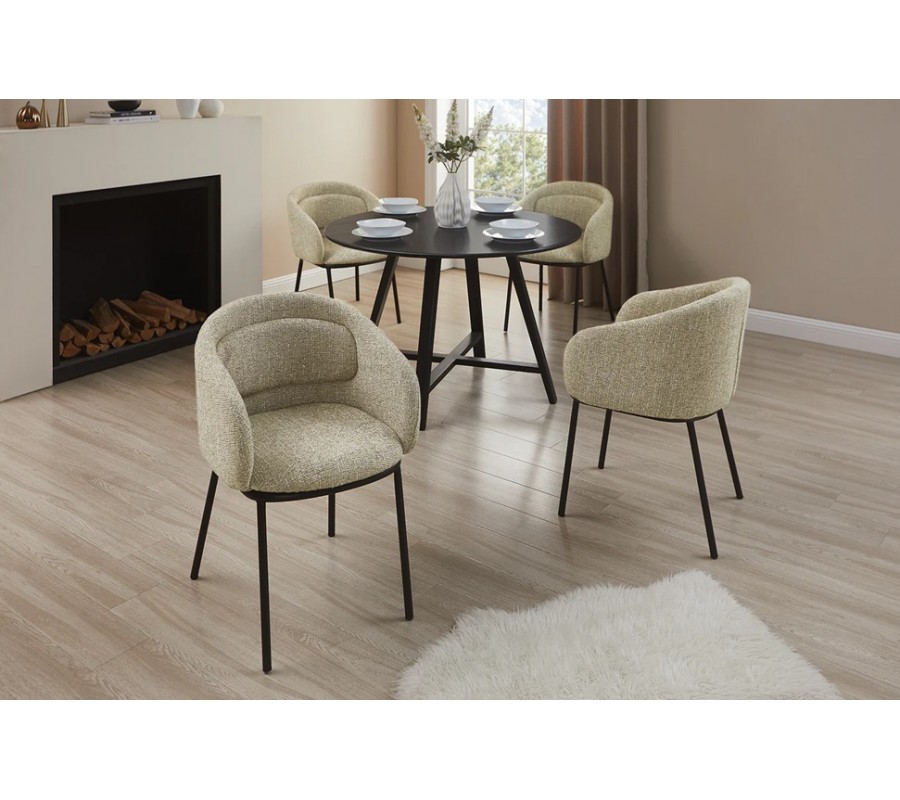 Kovové nožičky prinášajú do dizajnu dotyk industriálneho štýlu. Ich čierna farba esteticky kontrastuje so svetlou látkou. Štíhly valcovitý tvar pôsobí vzdušne a zošikmené línie zabezpečia stabilitu.