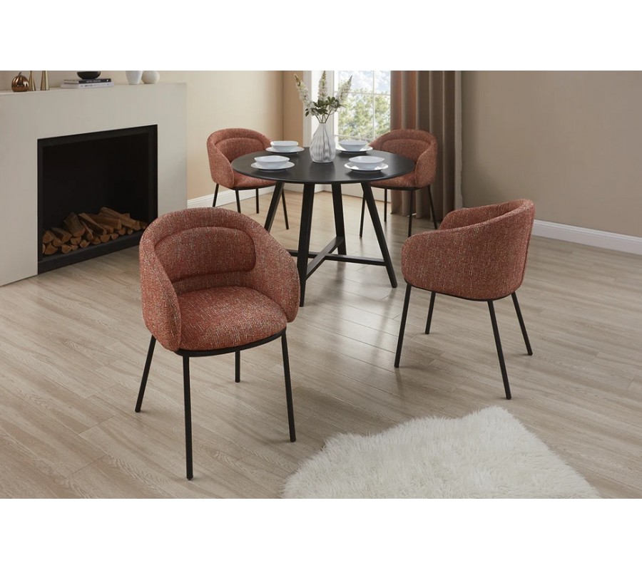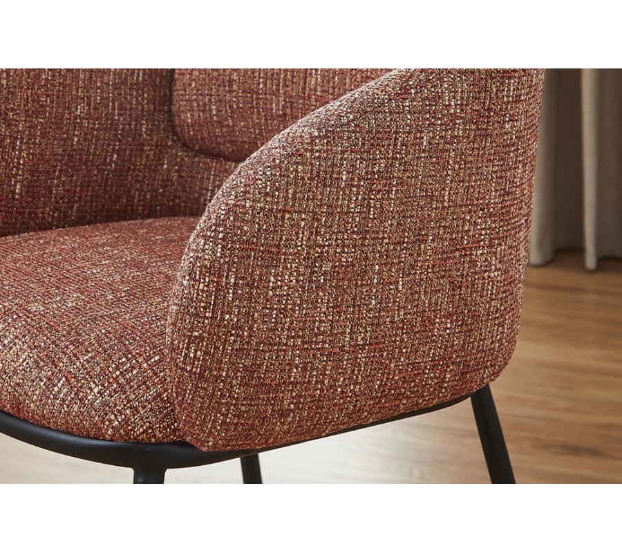 Jedálenská stolička Tromso prinesie do vašej domácnosti moderný štýl s dotykom škandinávskej estetiky. Pohodlné čalúnenie a opierky zaručia maximálny komfort aj pri dlhšom posedení a poťah v hrdzavom červenom odtieni prinesie do miestnosti štýlový farebný akcent.