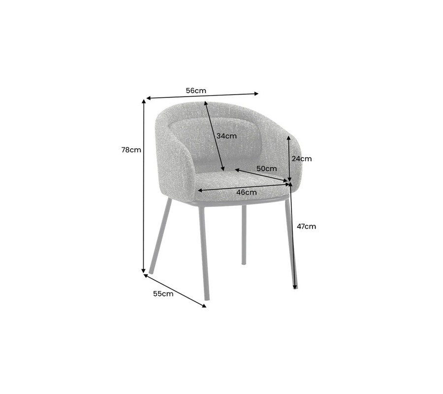 Štyri kovové nožičky v matnom čiernom prevedení sú zošikmené, čo poskytuje výbornú stabilitu nábytku. Ich dlhý štíhly valcovitý tvar vizuálne odľahčuje mohutnú sedaciu časť a stolička tak pôsobí ľahko a vzdušne.
