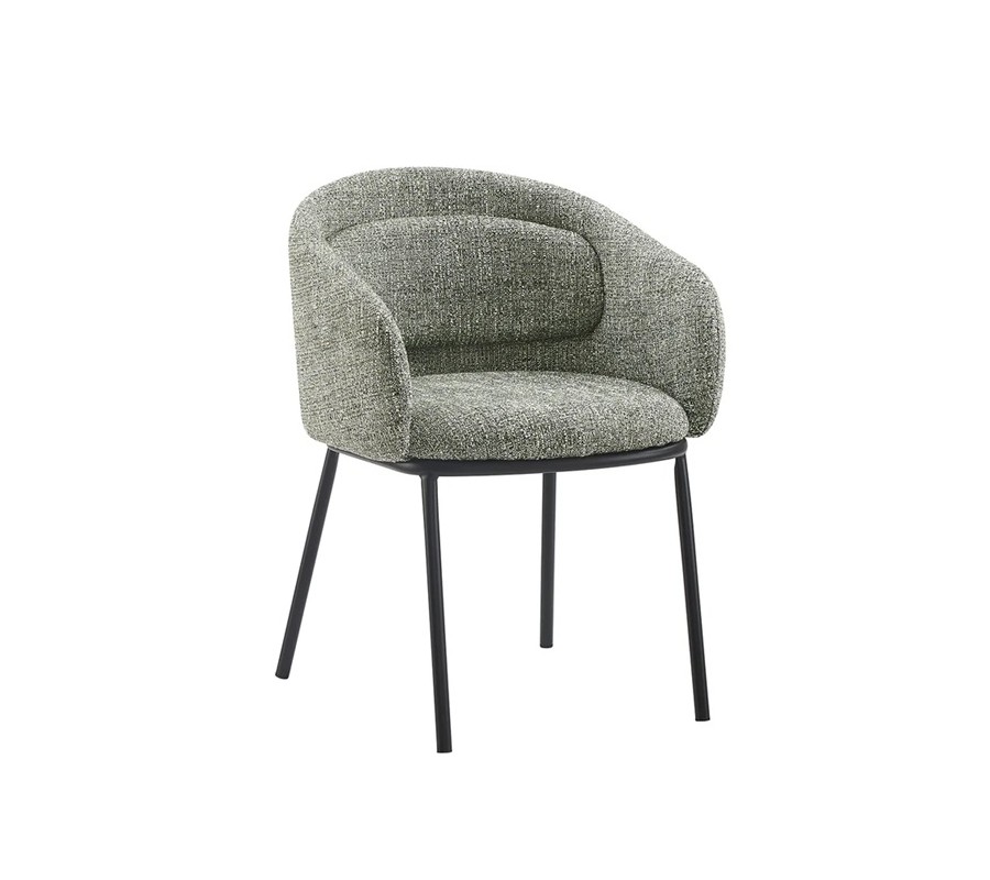 Stolička má elegantnú siluetu, v ktorej dominujú rovné línie v kombinácii s ladnými krivkami. Podstavu tvoria štyri štíhle valcovité nožičky. Vďaka zošikmeným líniám poskytujú výbornú stabilitu a dizajn zároveň pôsobí odľahčeným dojmom. Prevedenie z kovu s matným čiernym nástrekom dodáva stoličke moderný industriálny nádych.