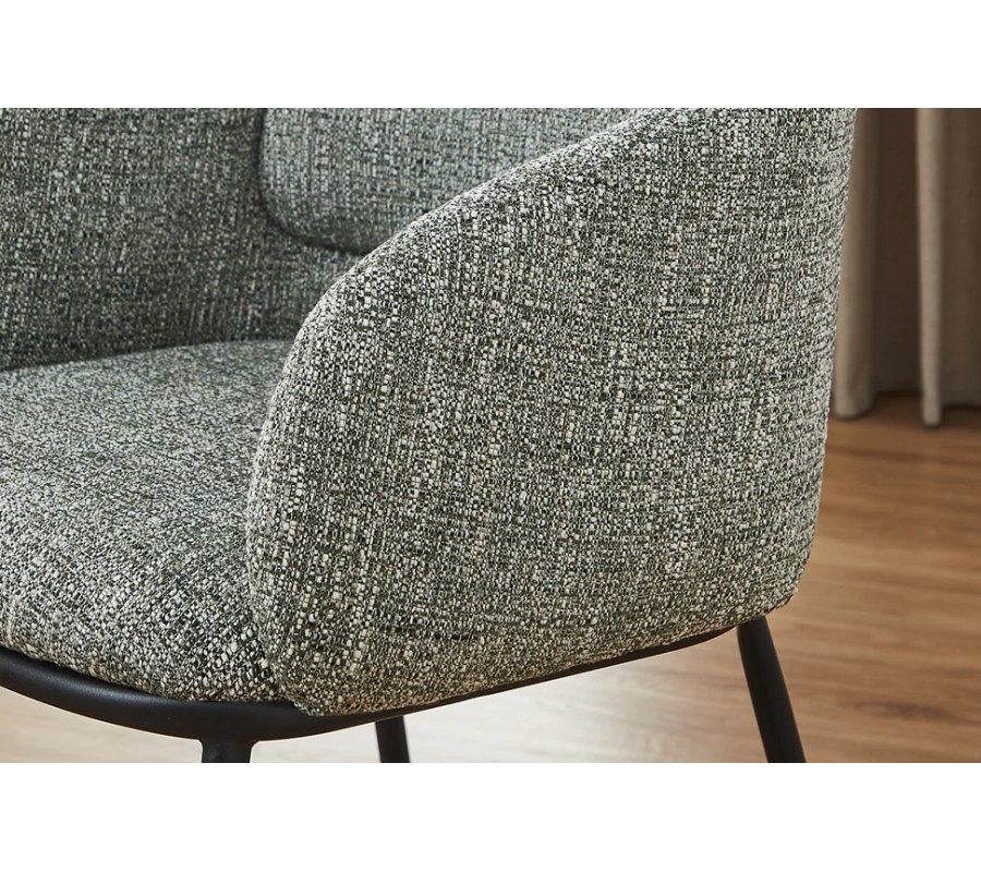 Penovú výplň pokrýva poťah z mikrovlákna, ktoré je mimoriadne odolné voči vplyvom každodenného používania a nevyžaduje náročnú údržbu. Textília má bohatú vizuálnu štruktúru a vďaka kombinácii tenšieho a hrubšieho vlákna je príjemná na dotyk. Tmavá zelená a biela farba vytvárajú elegantný melírovaný vizuál, ktorý dizajn oživí no zároveň pôsobí moderným dojmom.