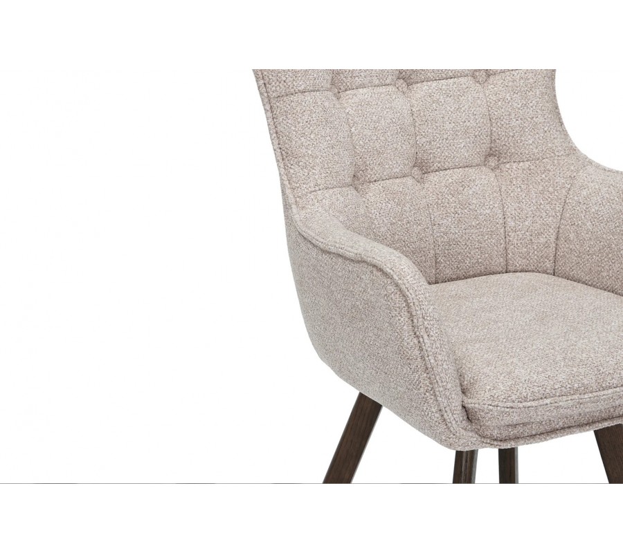 Škandinávska béžová jedálenská stolička Herold s prešívaným čalúnením s nožičkami z dubového dreva tmavej hnedej farbe 93 cm