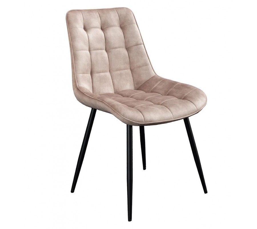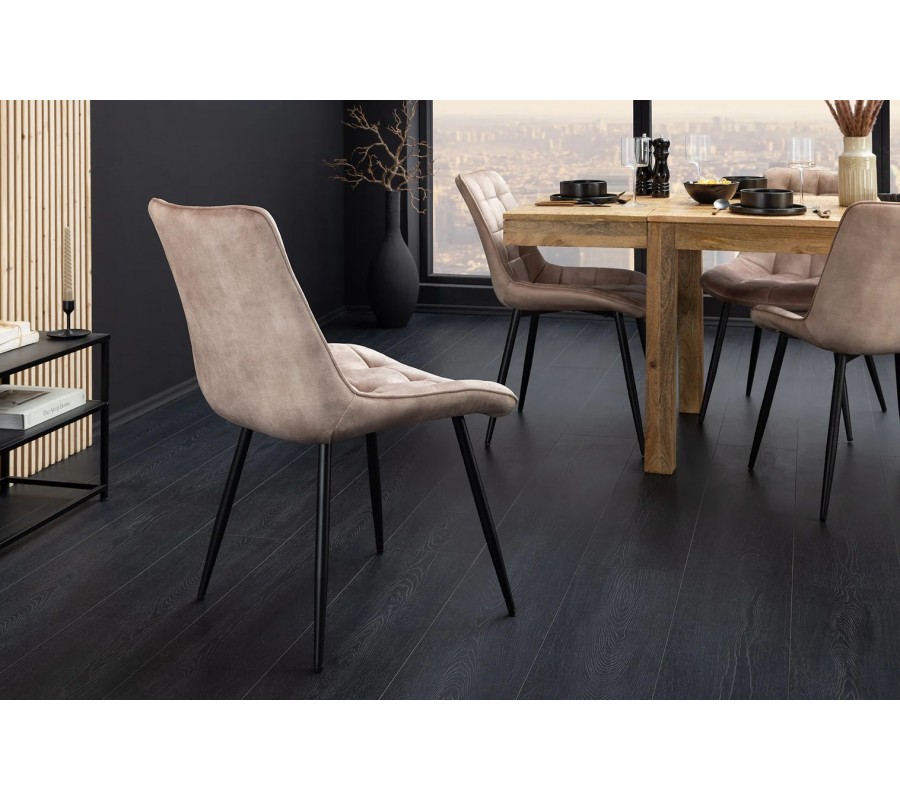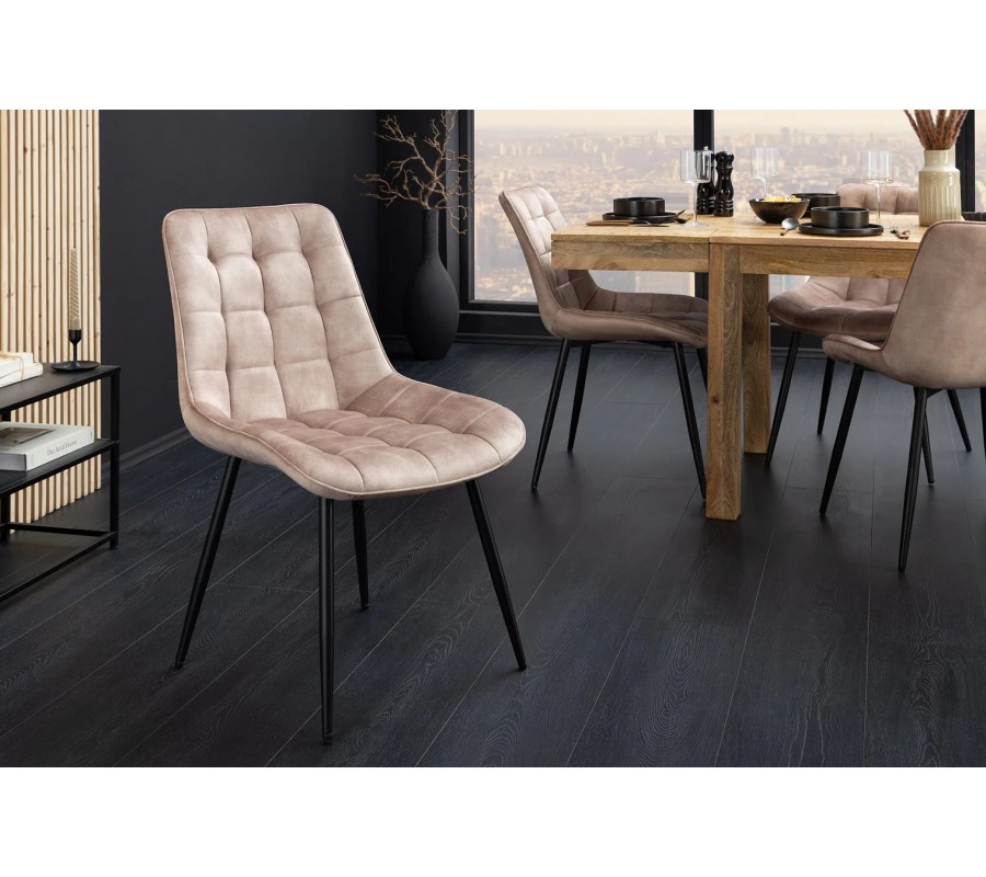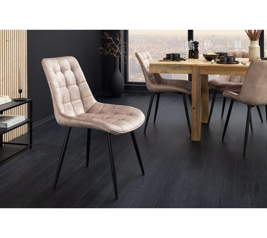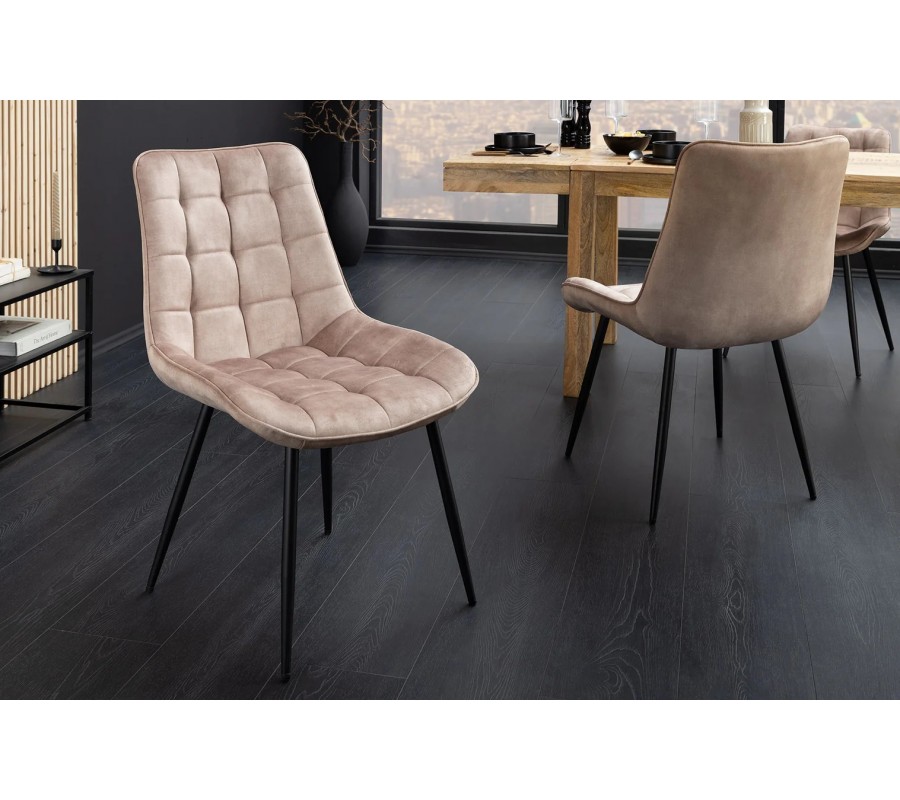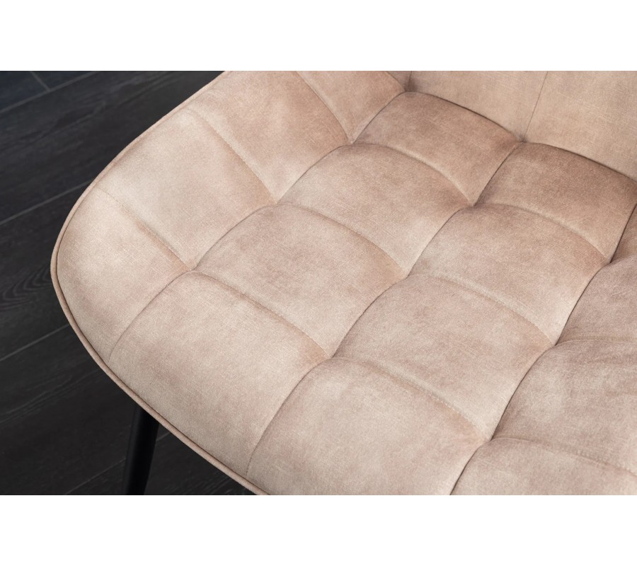 Dizajnová škandinávska jedálenská stolička Moritz so zamatovým poťahom v šampanskom béžovom odtieni s prešívaním 51 cm