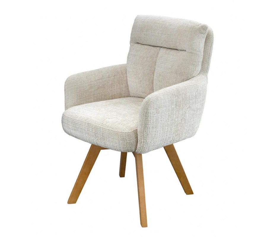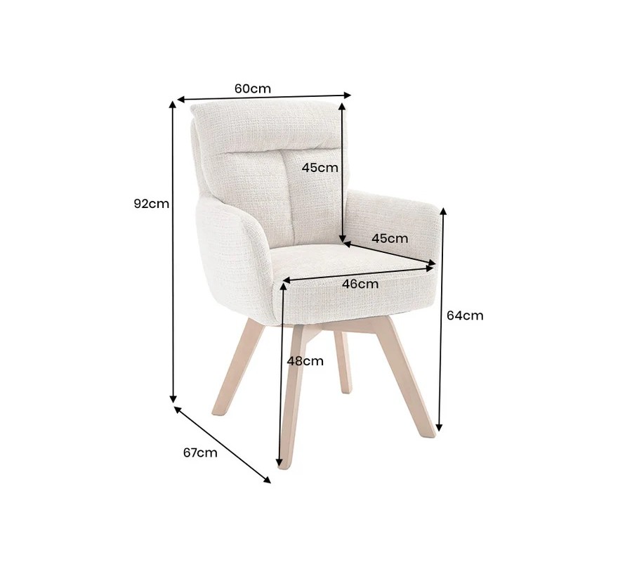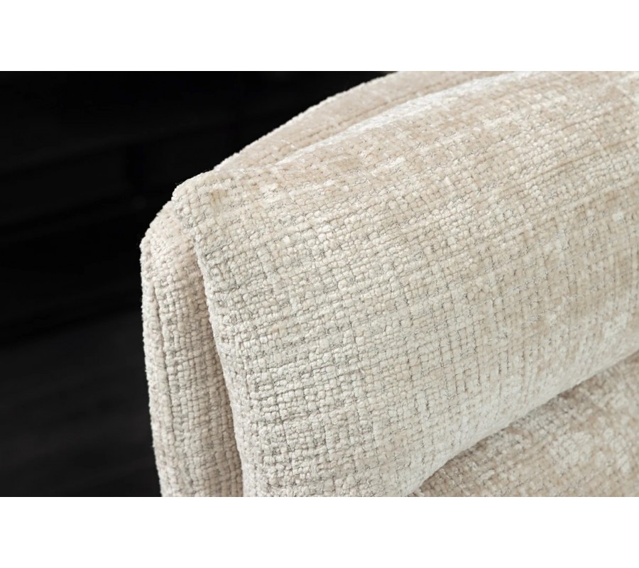 Poťah je vyrobený z príjemnej ženilkovej textílie, ktorá sa vyznačuje výraznou mäkkou štruktúrou a jemným zamatovým leskom. Svetlý krémový odtieň dodáva stoličke škandinávsky nádych a mikrovlákno poskytne vysokú odolnosť voči vplyvom každodenného používania.