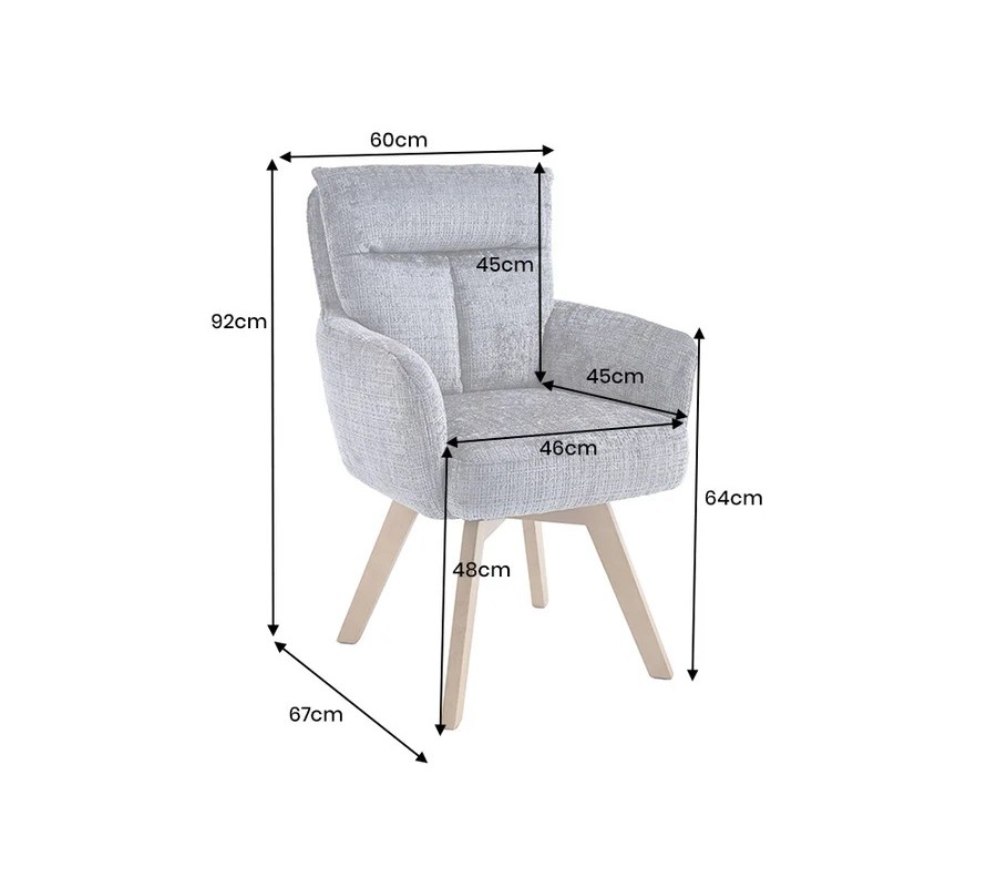 Nožičky majú štíhly hranatý profil a sú mierne zošikmené. Stolička je tak pevná a stabilná. Sú vyrobené z masívneho bukového dreva v naturálnej svetlej hnedej farbe, ktoré prináša do dizajnu škandinávsky charakter. Vo vrchnej časti po sedadlom sa nachádza spojnica v tvare X, obsahujúca mechanizmus pre otočenie o 360°.