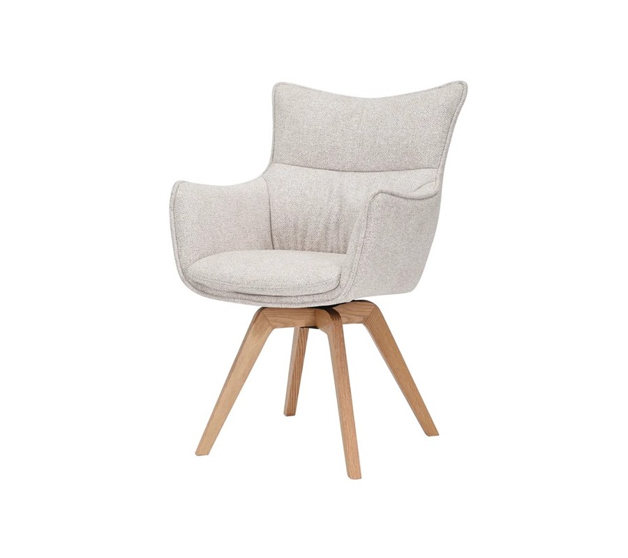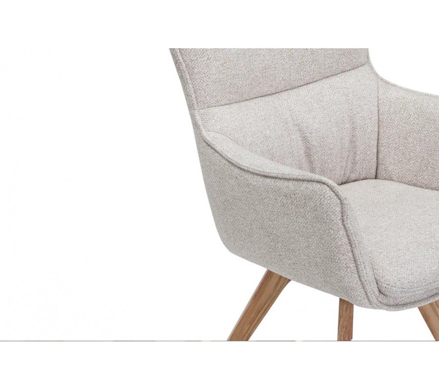 Jedálenská stolička Krespa spája moderný dizajn s maximálnym komfortom. Kombinácia béžovej farby s dubovým drevom prinesie do priestoru harmonický vizuál škandinávskeho štýlu, ktorý pôsobí elegantným a útulným dojmom.