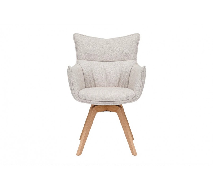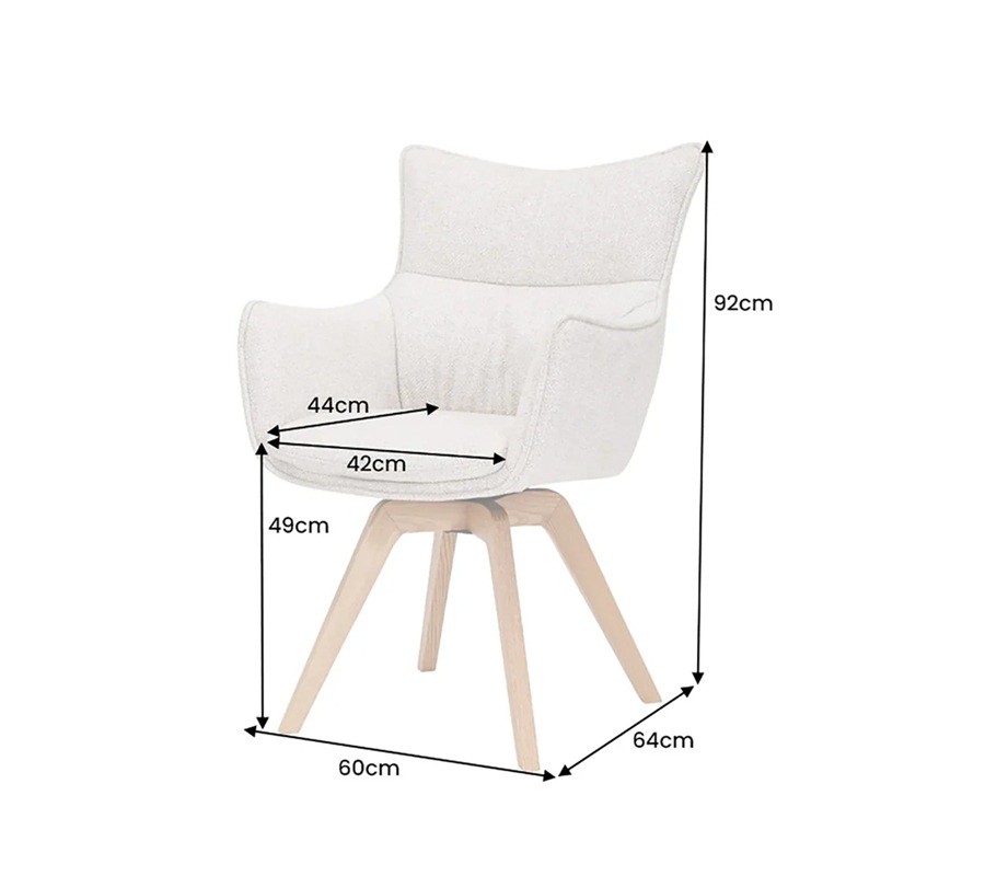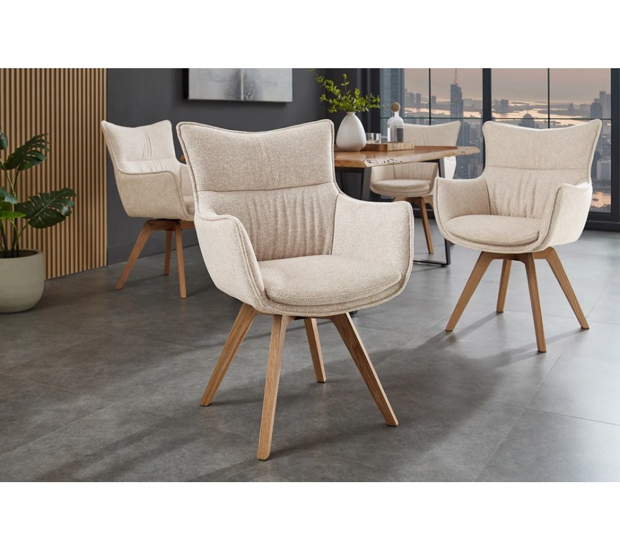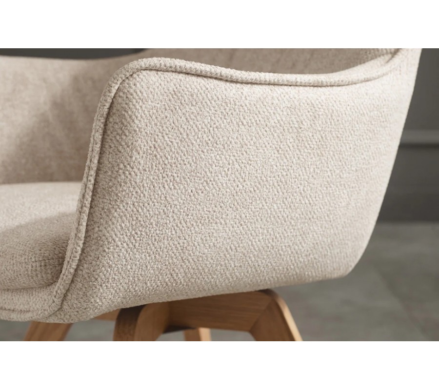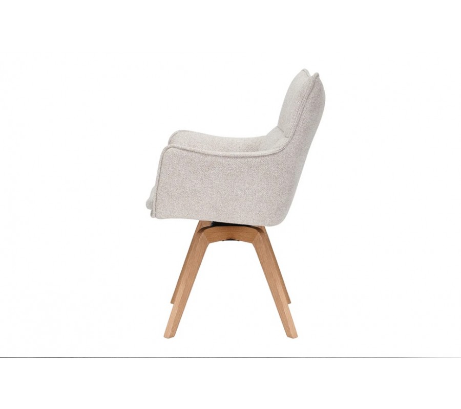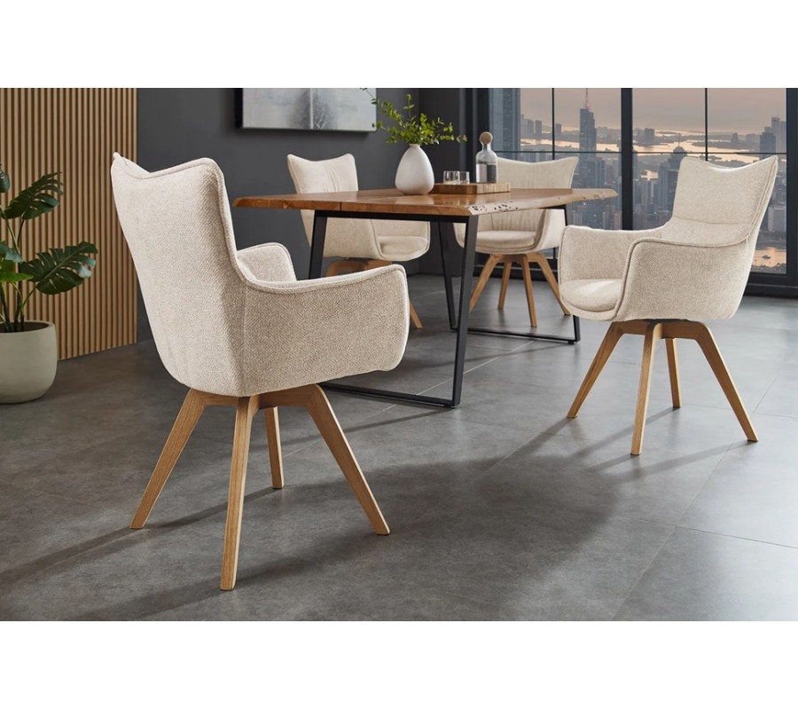 Dizajnová škandinávska otočná jedálenská stolička Krespa s béžovým poťahom a hnedými dubovými nohami 58 cm