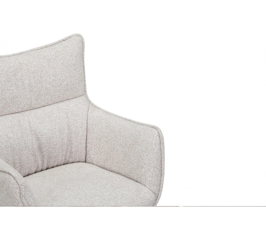 Poťah je vyrobený z mikrovlákna, ktoré dodáva stoličke výbornú odolnosť voči vplyvom každodenného používania. Textília má výrazné hrubé tkanie, ktoré v kombinácii so svetlou krémovou béžovou farbou pôsobí útulným a naturálnym dojmom. Opierku zdobí horizontálna prešívaná línia a na zadnej strane sa nachádza dekoratívny zips.