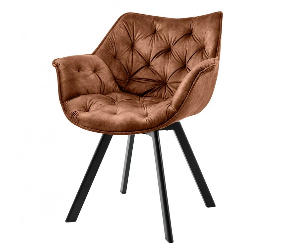 Moderná hnedá otočná jedálenská stolička Hetty so zamatovým poťahom s kovovými nožičkami v čiernej farbe 81 cm