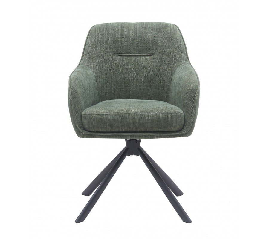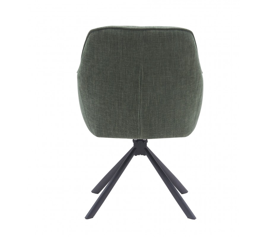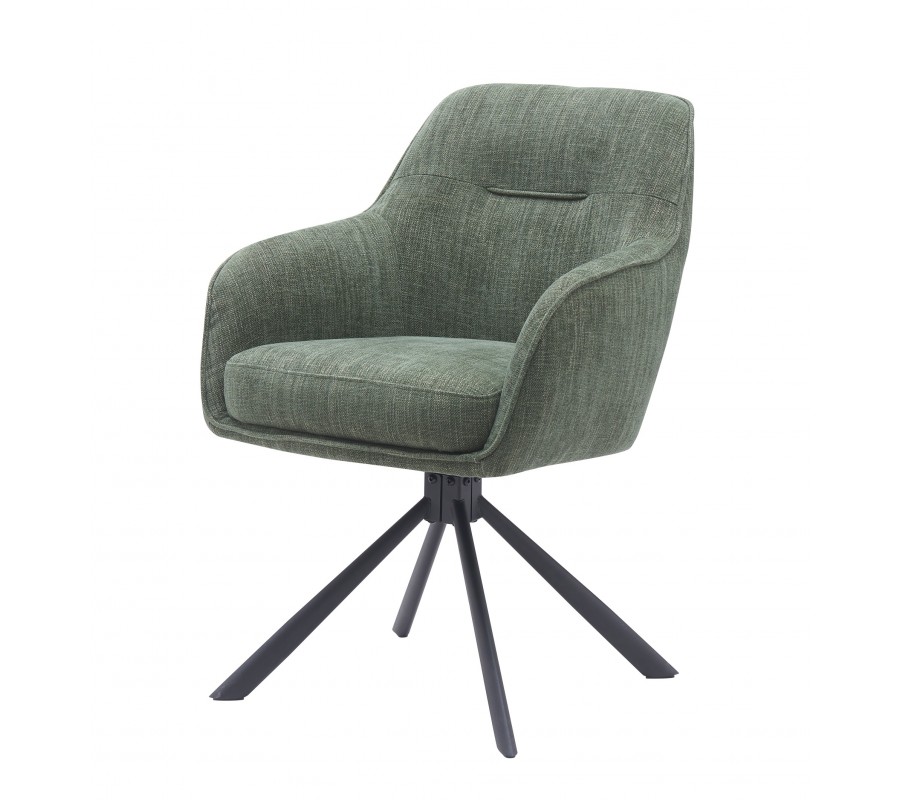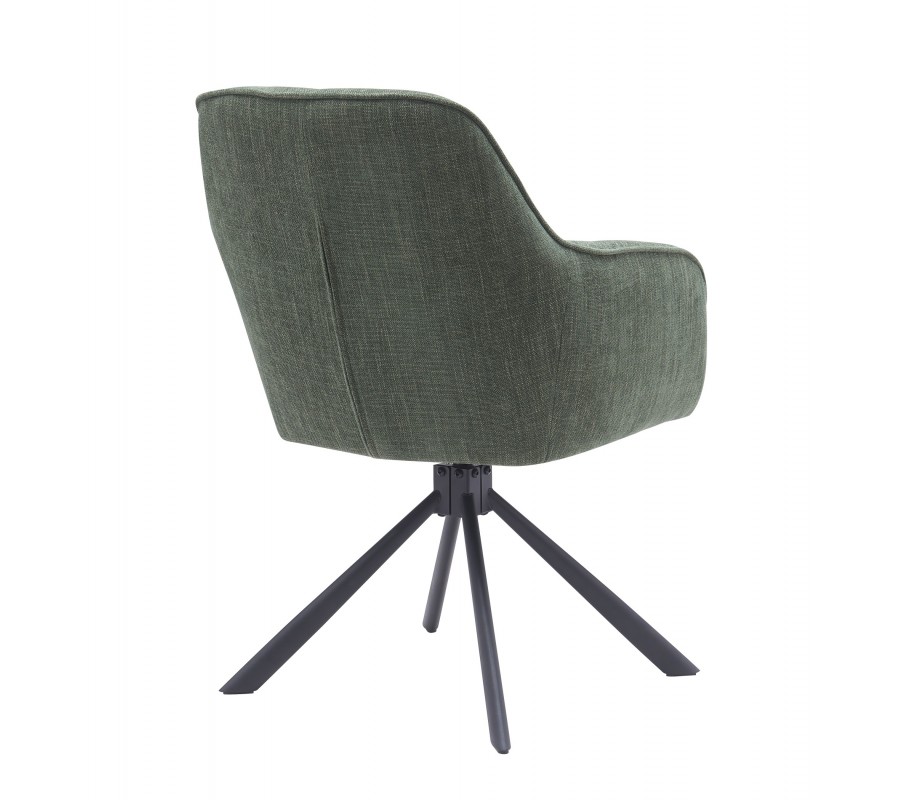 Dizajnová moderná otočná jedálenská stolička Egon so šalviovým zeleným poťahom so zamatovým leskom a čiernou podstavou 59 cm