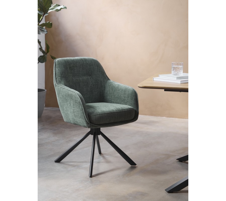 Jedálenská stolička Egon skvele doplní stoly v s tmavou kovovou podstavou v industriálnom štýle. Zelená farba vynikne v kombinácii s masívnym drevom či prírodným kameňom v moderných priestoroch. Hodí sa aj ako akcentový prvok do škandinávskej jedálne, v kombinácii s neutrálnymi odtieňmi.