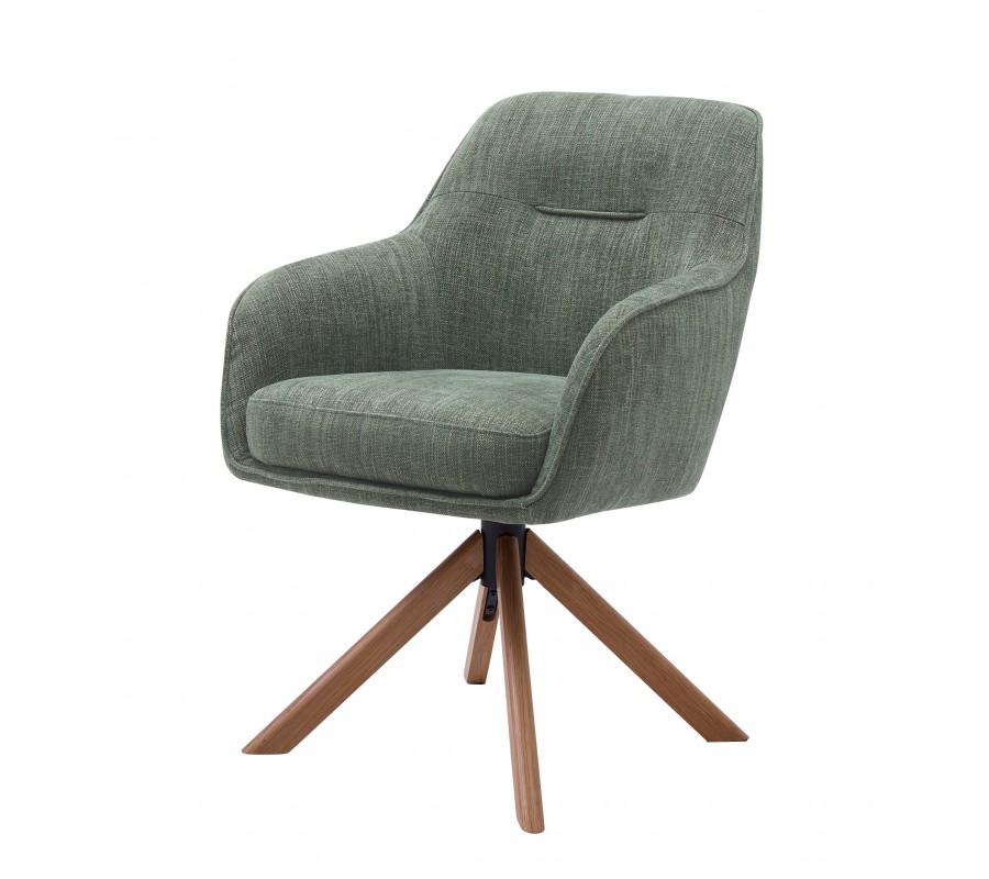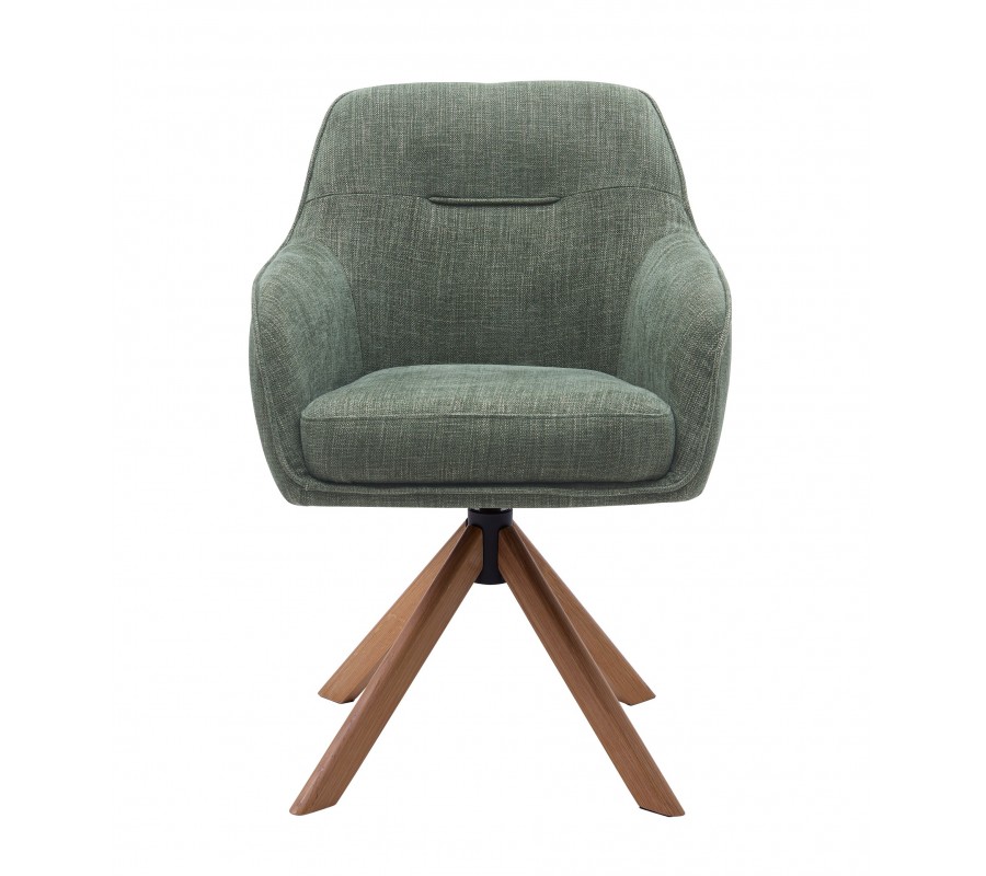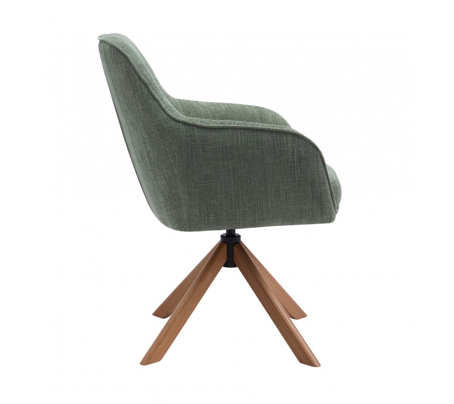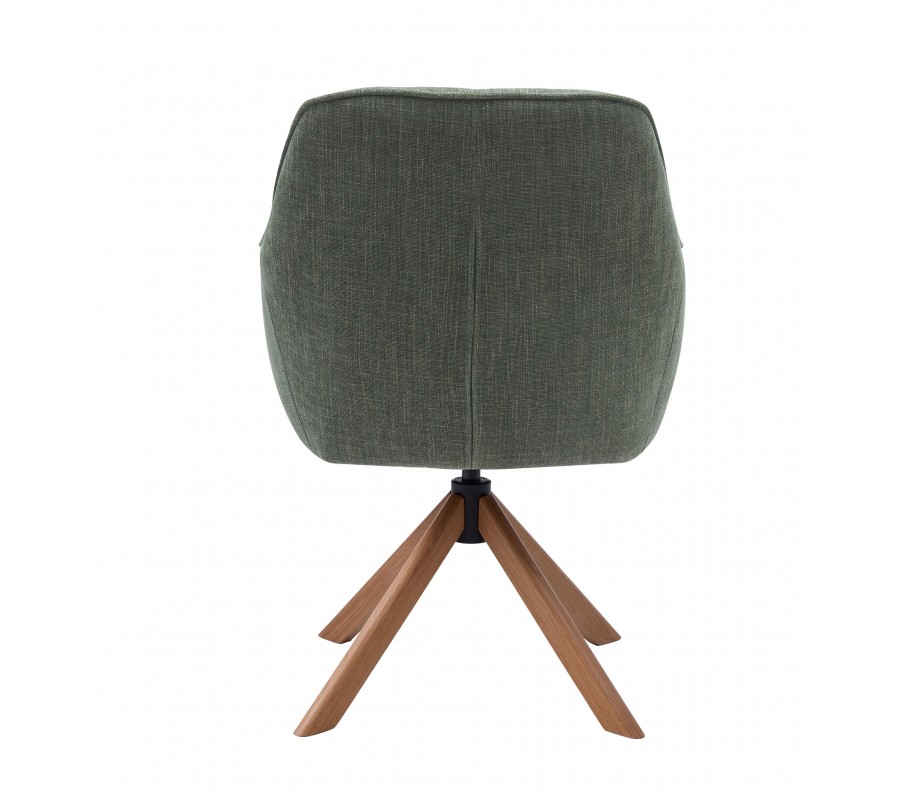 Moderná škandinávska otočná jedálenská stolička Egon so šalviovo zeleným poťahom a dubovými hnedými nohami 59 cm