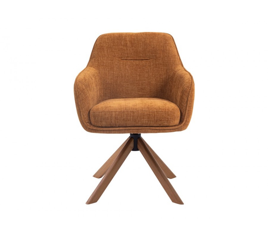 Jedálenská stolička Egon prinesie do vášho interiéru harmóniu škandinávskeho štýlu v modernom dizajnovom prevedení. Kombinácia horčicovej žltej farby a masívneho dreva vytvorí v priestore svieži akcent a mäkké čalúnenie otočného sedadla poskytuje vysoký komfort pri sedení.