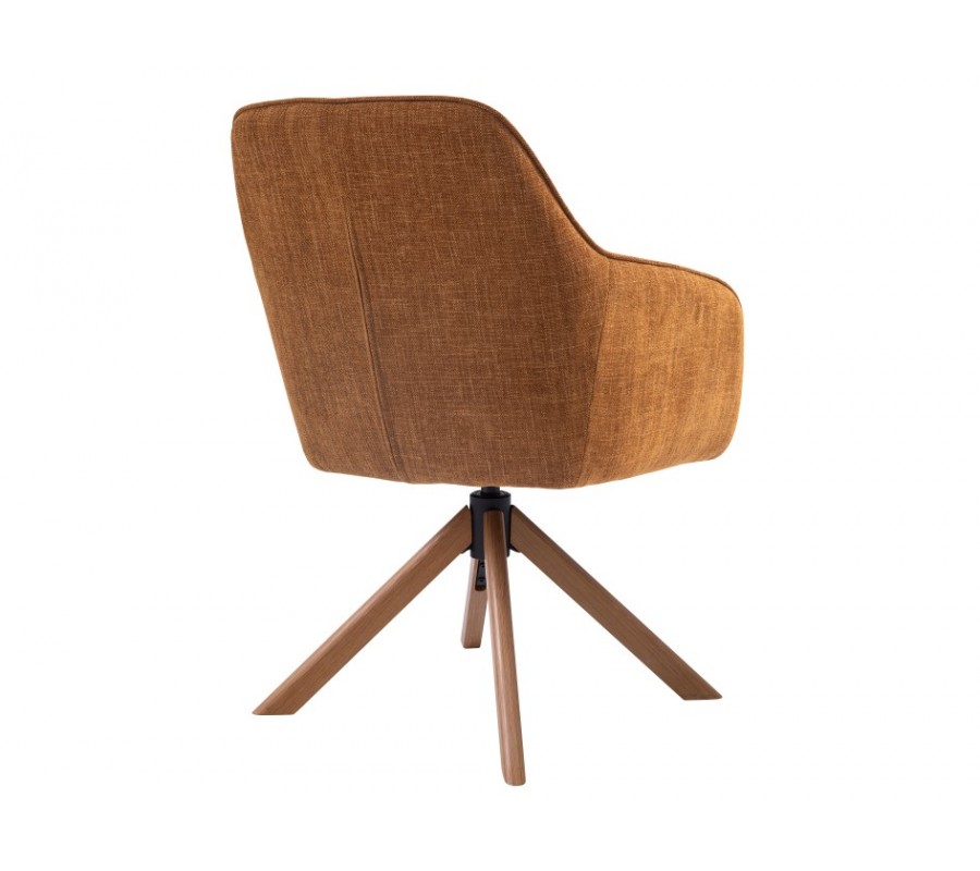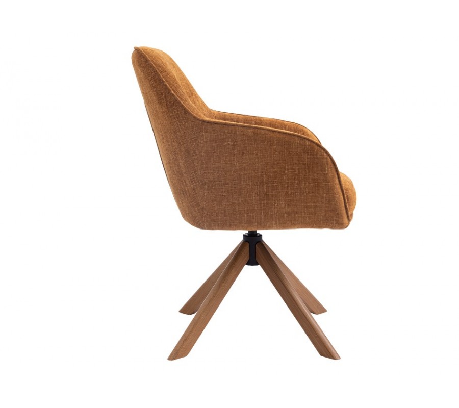 Dizajnová škandinávska jedálenská stolička Egon s otočným sedadlom s horčicovým žltým poťahom a hnedými dubovými nohami 59 cm