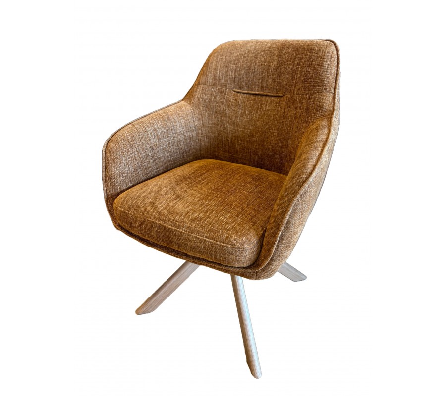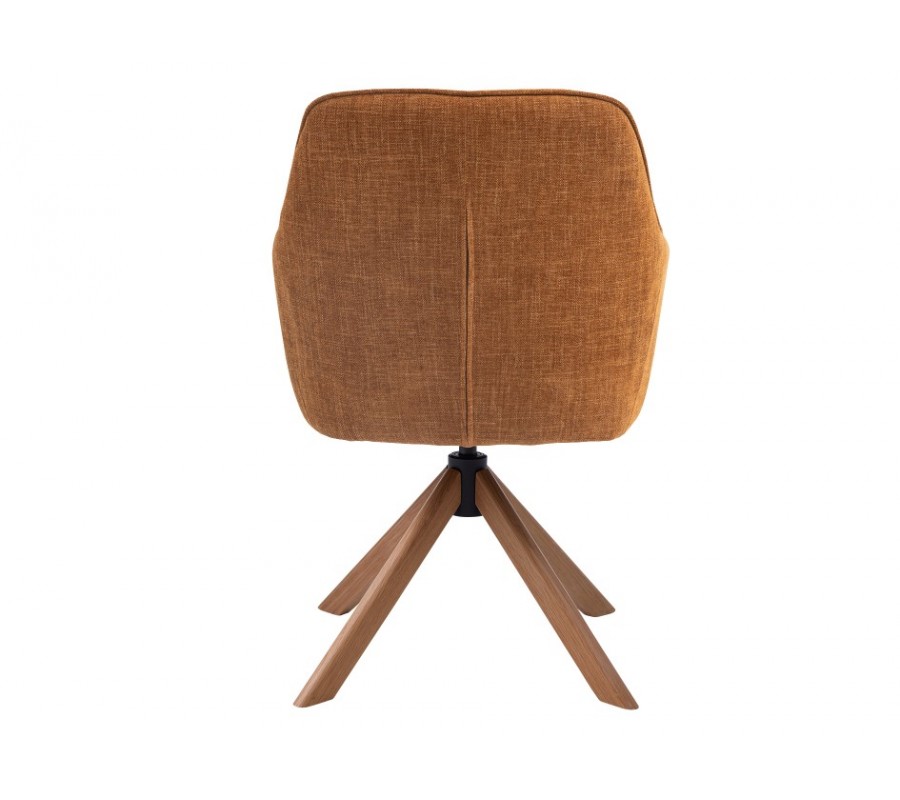 Stoličku dopĺňajú štyri nohy vyrobené z masívneho dubového dreva v prírodnej hnedej farbe. V hornej časti je nenápadne integrovaný otočný mechanizmus sedadla a zošikmený tvar nôh dodáva dizajnu dynamiku, pričom zároveň zabezpečuje dobrú stabilitu.