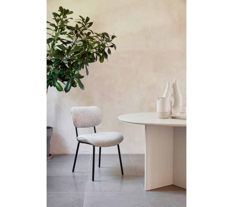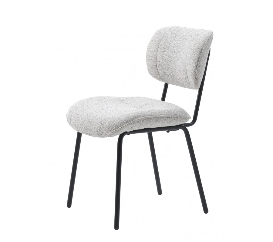 Jedálenská stolička Hruna prinesie do vašej domácnosti modernú eleganciu. Spája prvky industriálneho štýlu s kontrastným teplým buklé a neutrálne farebné prevedenie sa ľahko kombinuje s ďalším nábytkom.