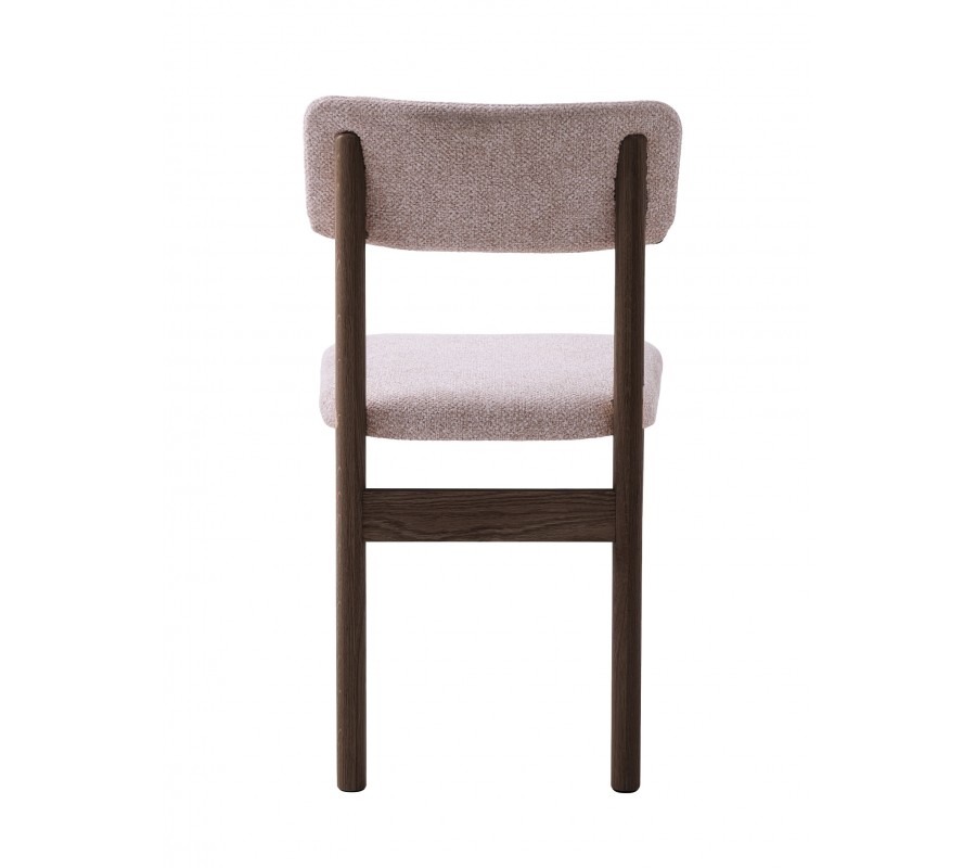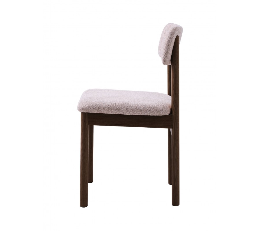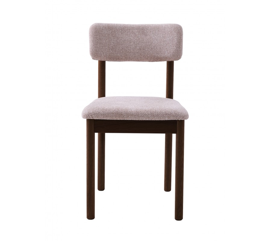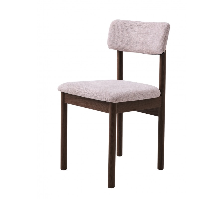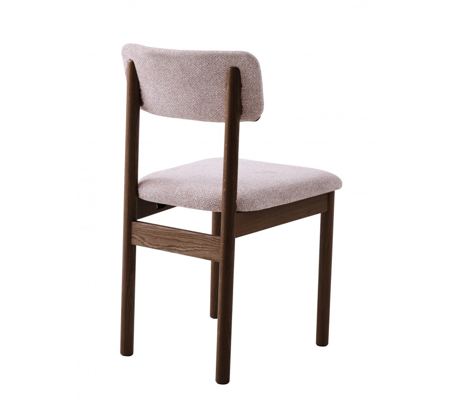 Konštrukcia stoličky je vyrobená z dubového dreva. Lakovanie v tmavej hnedej farbe jej dodáva typický severský výraz a zvýrazňuje prírodnú štruktúru letokruhov. Naturálny vizuál výborne dopĺňa buklé poťah na sedadle a opierke vo svetlom béžovo pieskovom odtieni. Výrazná štruktúra textílie pôsobí mäkko a útulne.