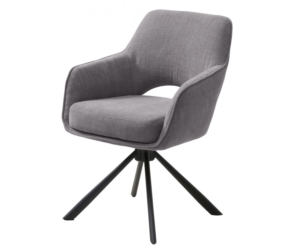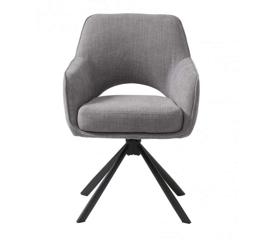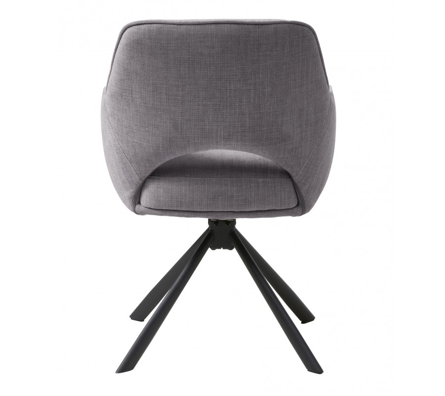 Industriálna otočná jedálenská stolička Mille s opierkami na ruky so sivým ženilkovým poťahom a čiernou podstavou 86 cm
