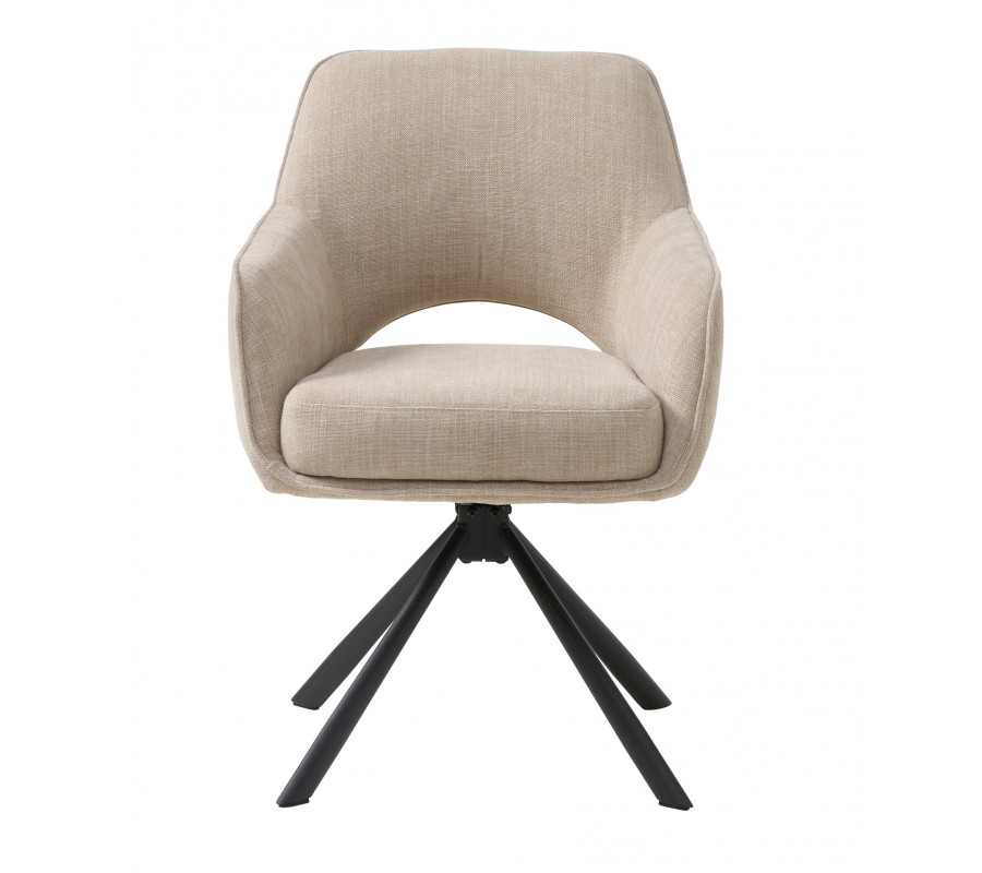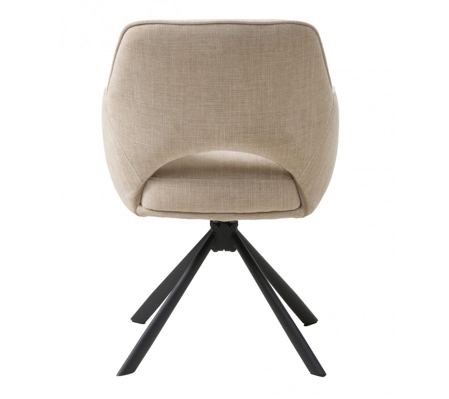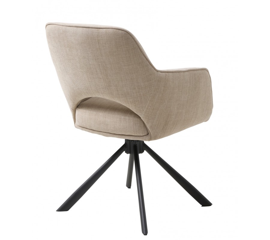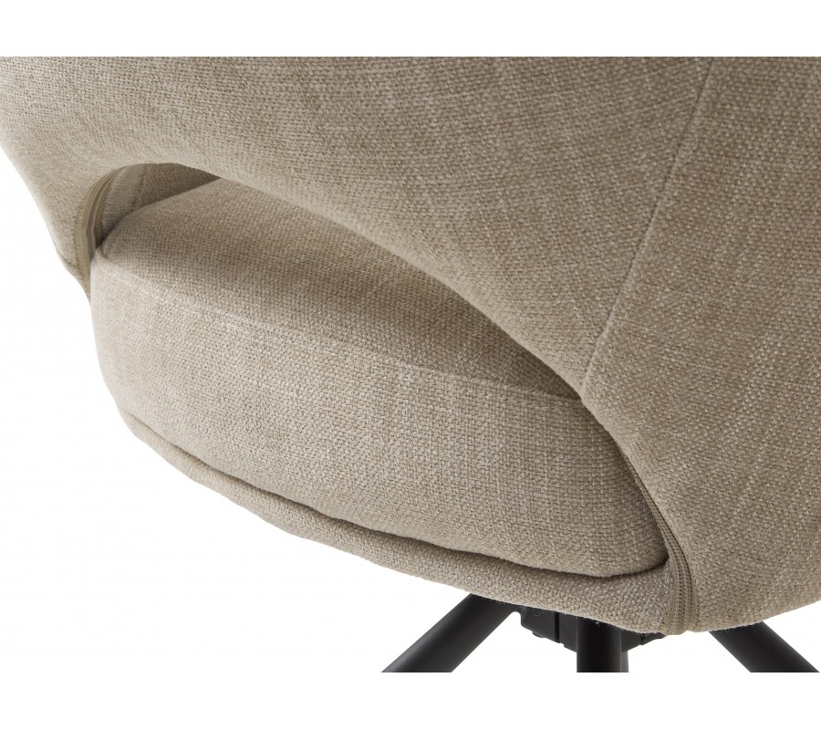 Moderná škandinávska otočná jedálenská stolička Mille s opierkou s výrezom a béžovým ženilkovým poťahom s čiernymi nohami 86 cm