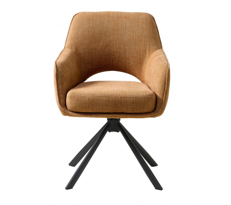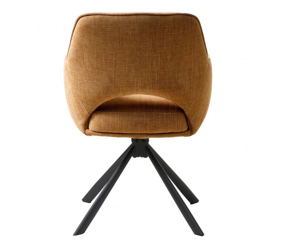 Moderná škandinávska jedálenská stolička Mille s horčicovým žltým ženilkovým poťahom a čiernou otočnou kovovou podstavou 86 cm