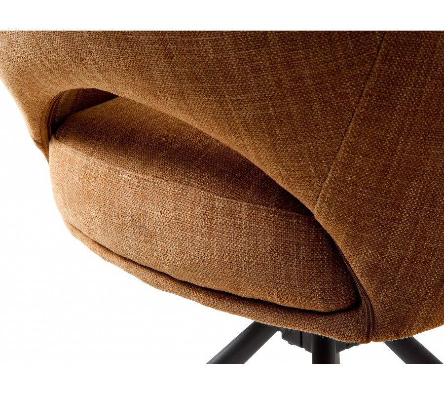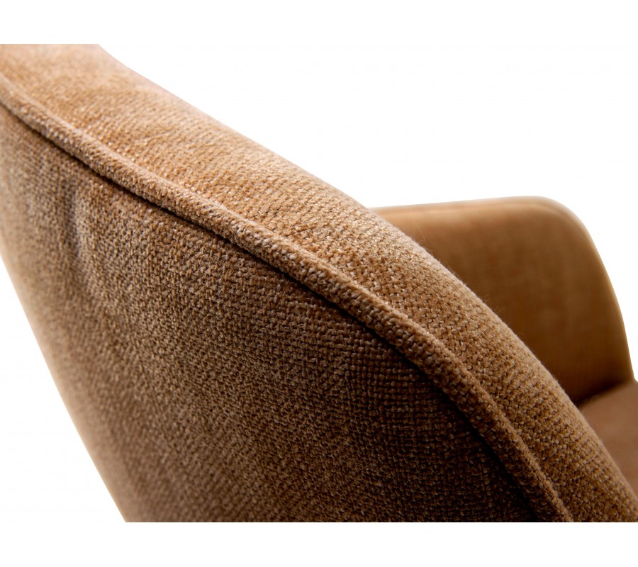 Sedacia časť je čalúnená a doplnená poťahom s odolným mikrovláknom, ktoré je ideálne na každodenné intenzívne používanie. Povrch látky má príjemnú štruktúru so ženilkovým efektom, vďaka čomu pôsobí mäkko. Horčicovo žlté prevedenie je jemne melírované a dodáva stoličke teplý charakter.