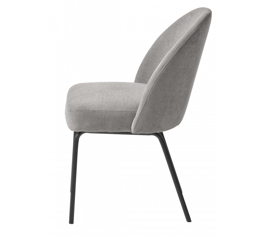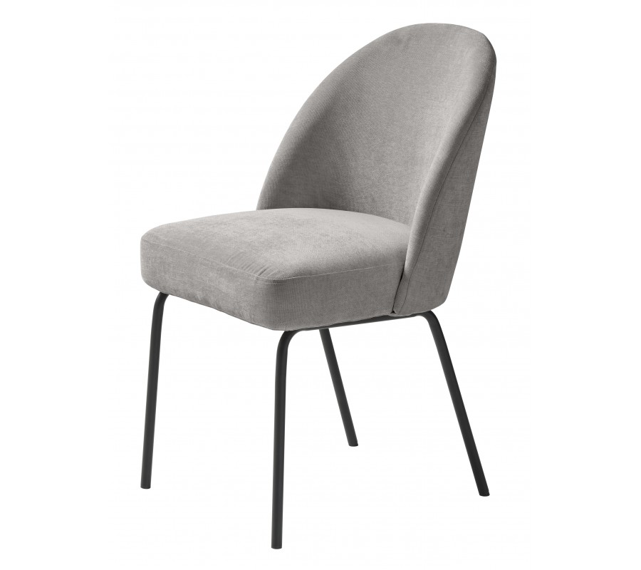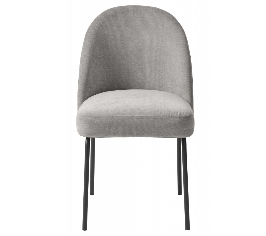 Moderná čalúnená jedálenská stolička Zila so ženilkovým poťahom v svetlej sivej farbe a čiernymi kovovými nohami 84 cm
