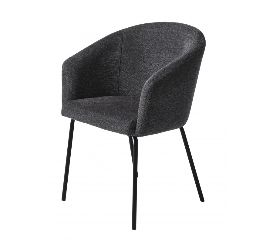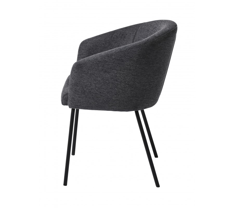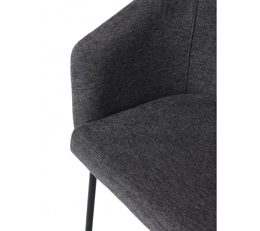 Industriálna jedálenská stolička Idun s opierkami na ruky s tmavým sivým poťahom a čiernymi kovovými nohami 80 cm