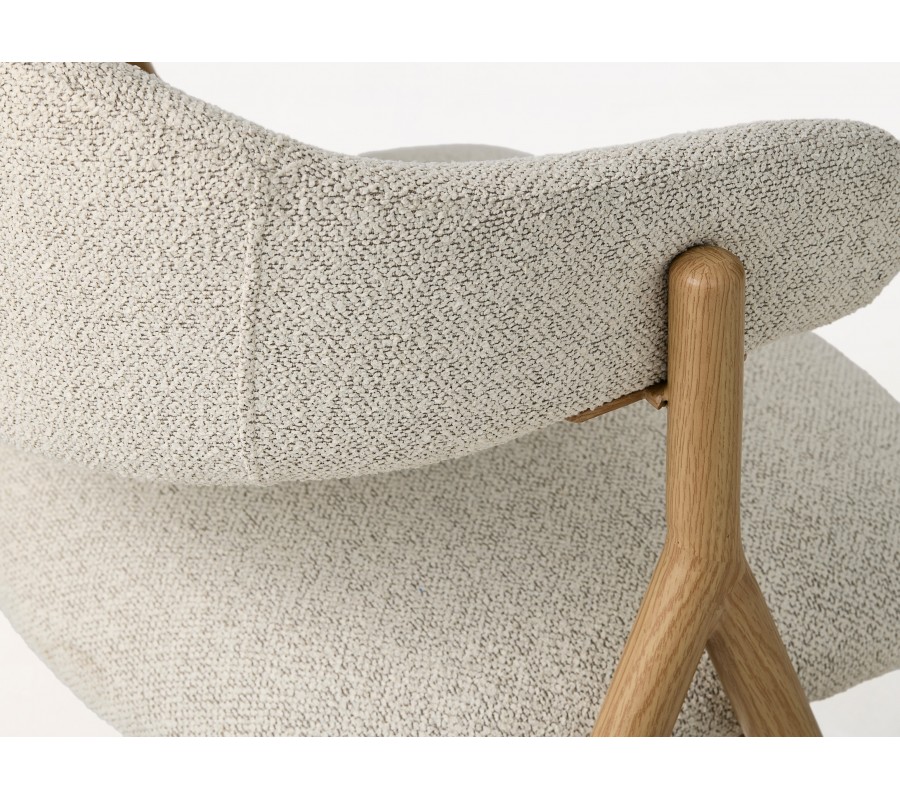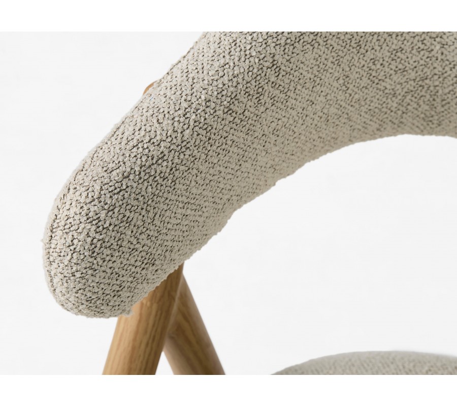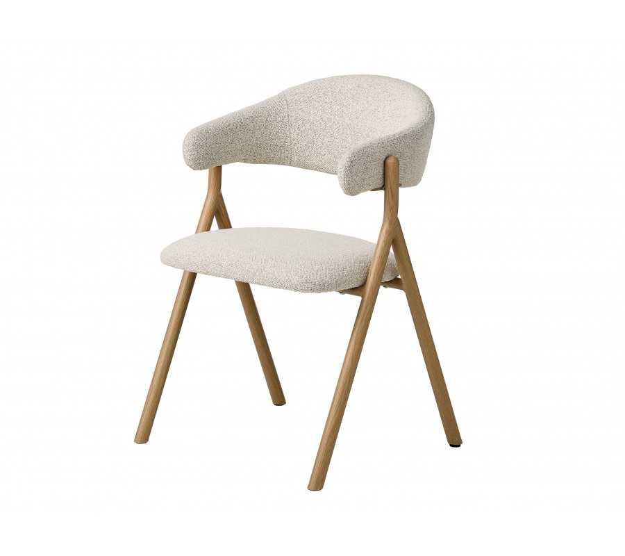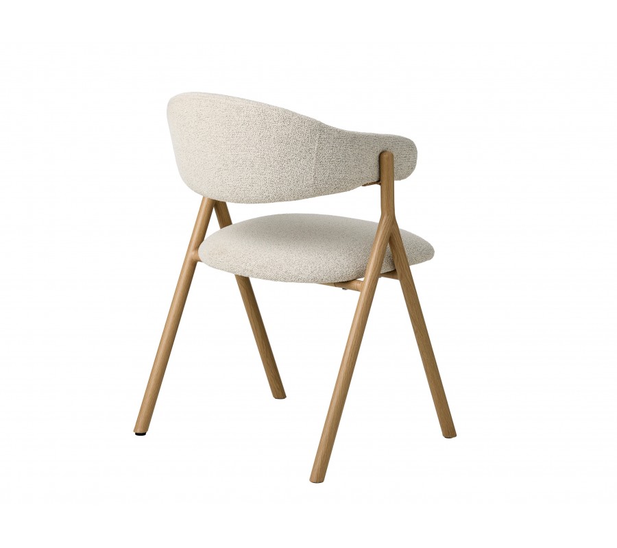 Stolička má štyri nohy valcovitého tvaru, ktoré sú výrazne zošikmené. Na bočných stranách sa každá dvojica nad úrovňou sedadla spája a z tohto bodu prechádza do vertikálnej línie, napojenej z vonkajšej strany na chrbtovú opierku. Konštrukcia vytvára na stranách prvky v tvare obráteného písmena Y, ktoré dodávajú nábytku dizajnový charakter. Obe strany sú spojené dvomi lineárnymi výstuhami, na ktorých je položené sedadlo. Dubové svetlé hnedé prevedenie s prírodnou kresbou letokruhov dodáva stoličke typický škandinávsky výraz a pôsobí elegantným dojmom.