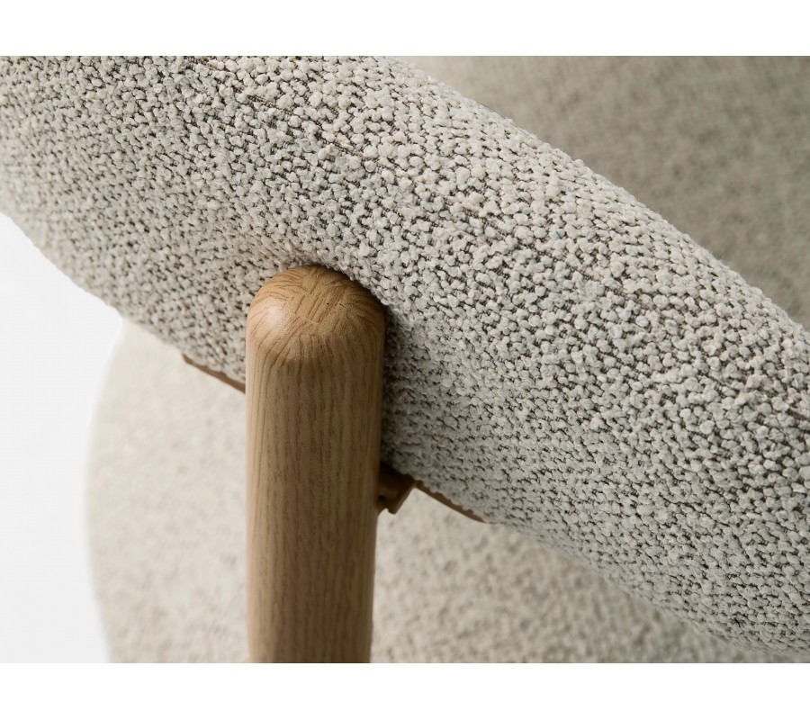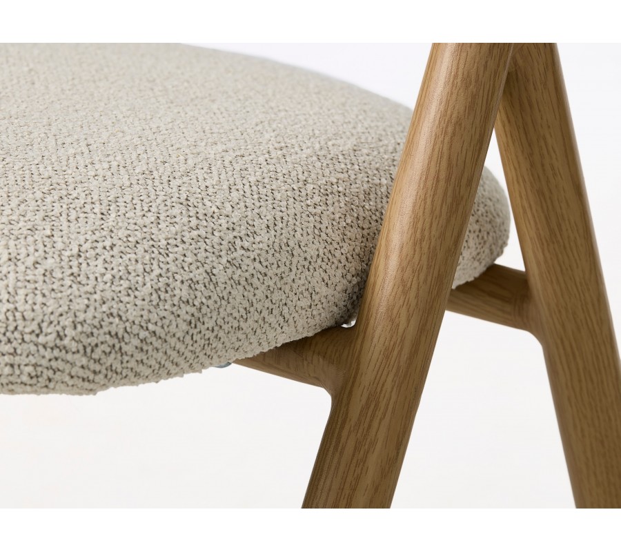Dizajnová škandinávska jedálenská stolička Alia so svetlým dubovým hnedým rámom a čalúnením v bielych a béžových tónoch 58 cm
